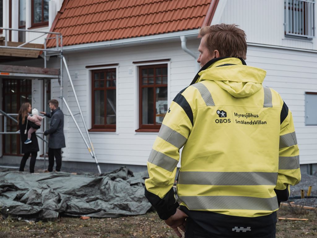 Du kommer även att bli inbjuden till ett byggstartsmöte hos oss på Myresjöhus. Om du bygger med totalentreprenad kommer du nu att träffa din egen projektledare som tillsammans med din säljare går igenom hela tidplanen för bygget, fram till inflyttning. Du får chans att ställa alla dina frågor, och får veta vad du själv behöver göra – och när. Till exempel när val av tapeter, kakel och klinker ska vara gjorda.