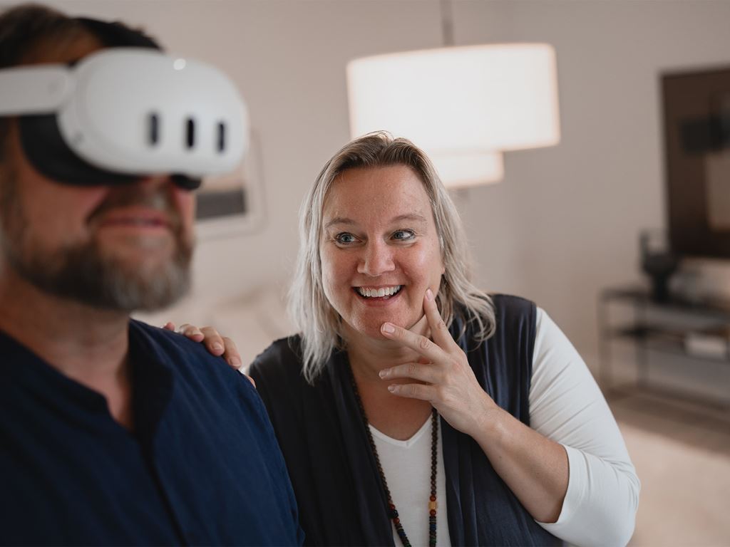 Det viktigaste valet på husresan är förstås att välja vilket hus ni ska bygga. För att hitta den rätta är det smart att ta sig tid att utvärdera flera olika husmodeller – och här kan en visning i virtual reality göra hela skillnaden. Det här är nämligen något helt annat än att bara se en film. När du tar på dig glasögonen kliver du rätt in i huset.