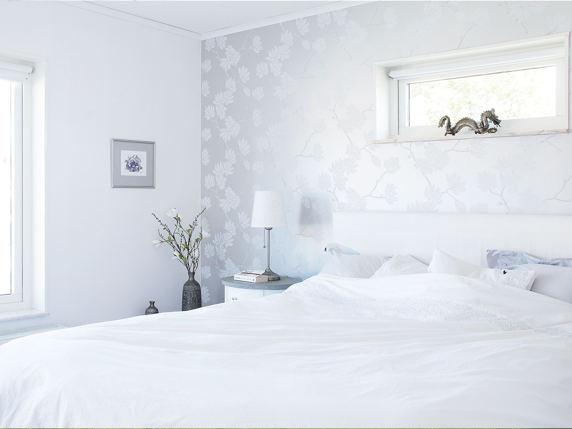 Från vardagsrummet har du en vacker utsikt genom ett rejält fönsterparti och via en altandörr når du husets balkong. Köket ligger på motsatt ände i nära anslutningen till den avskilda matplatsen där de stora fönstren ger ett fint ljusinsläpp.