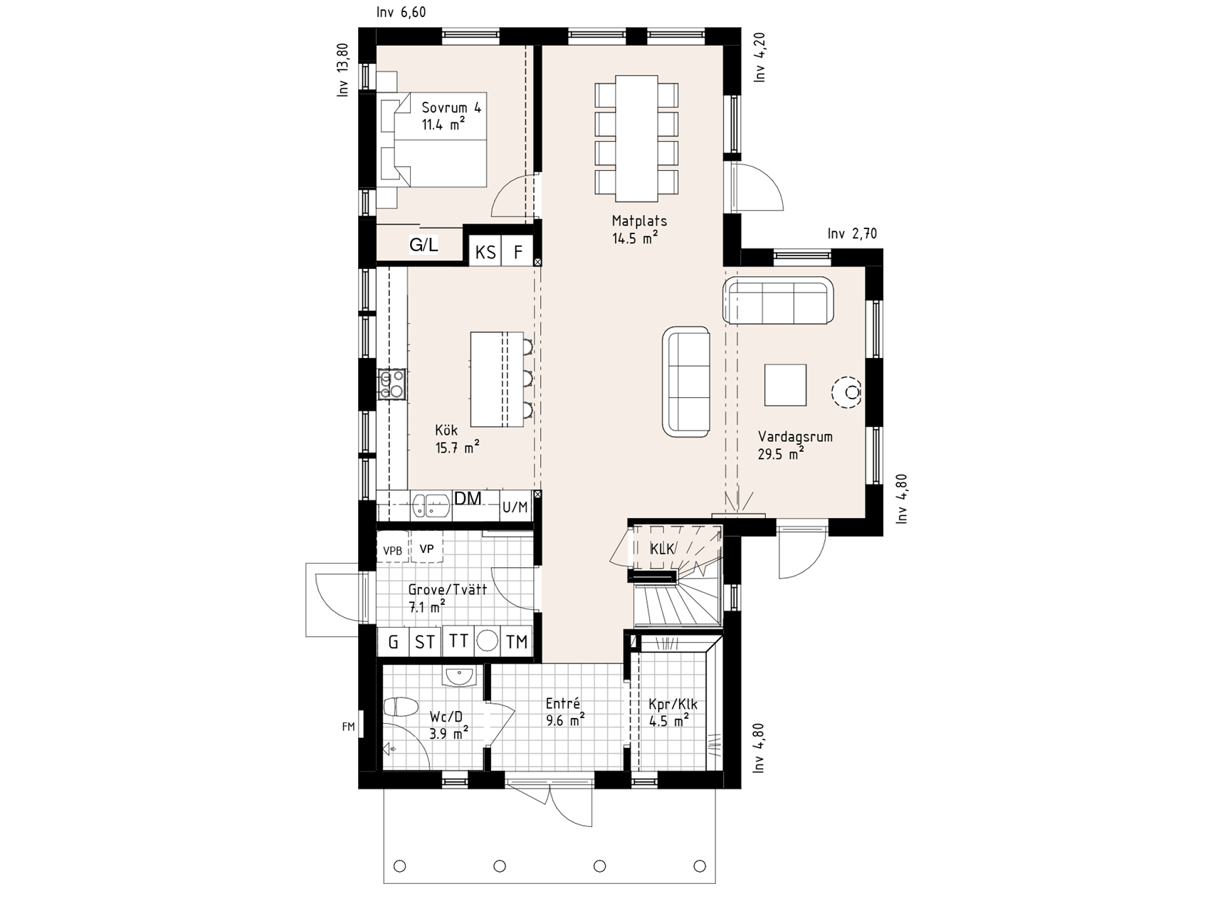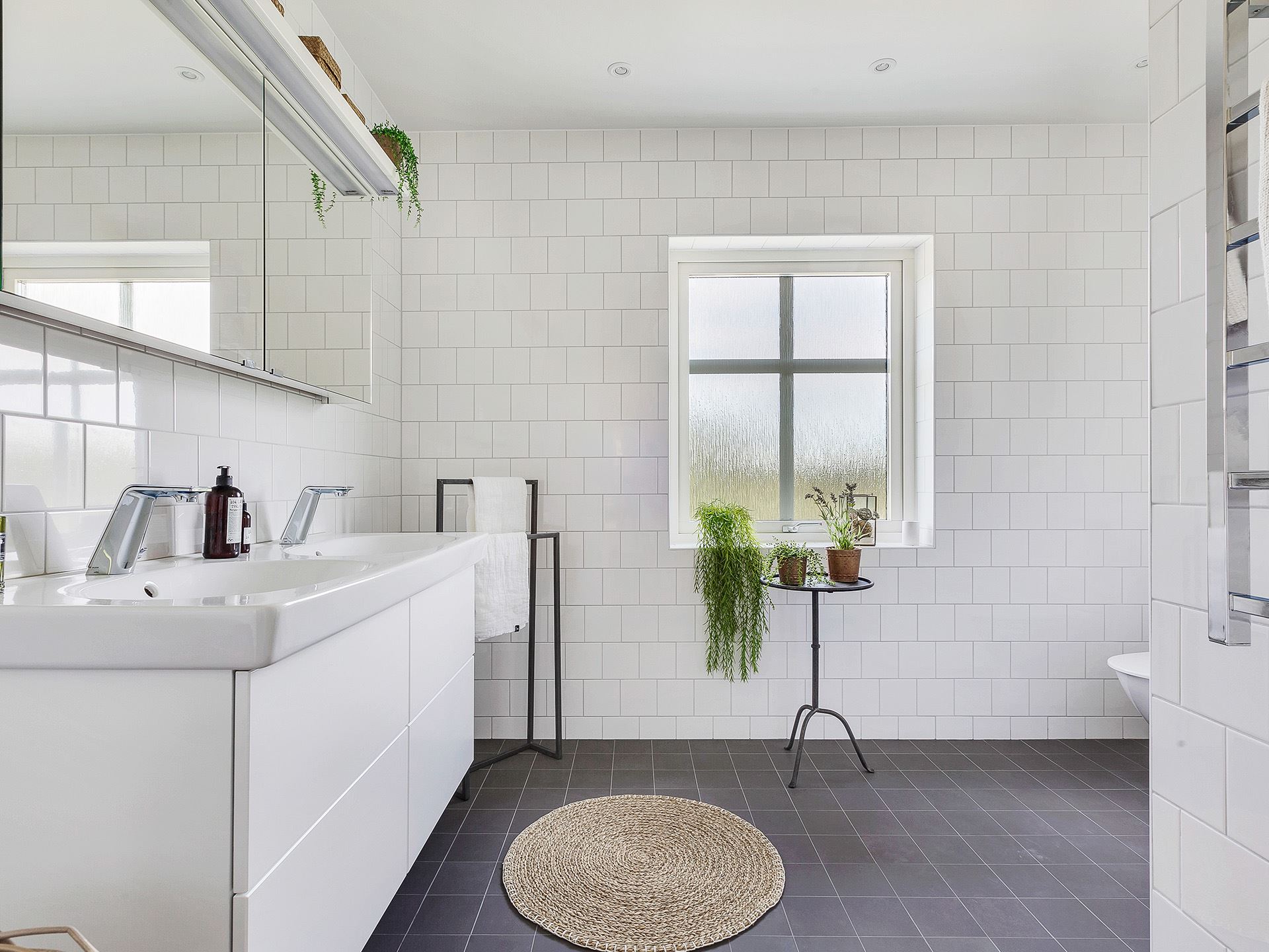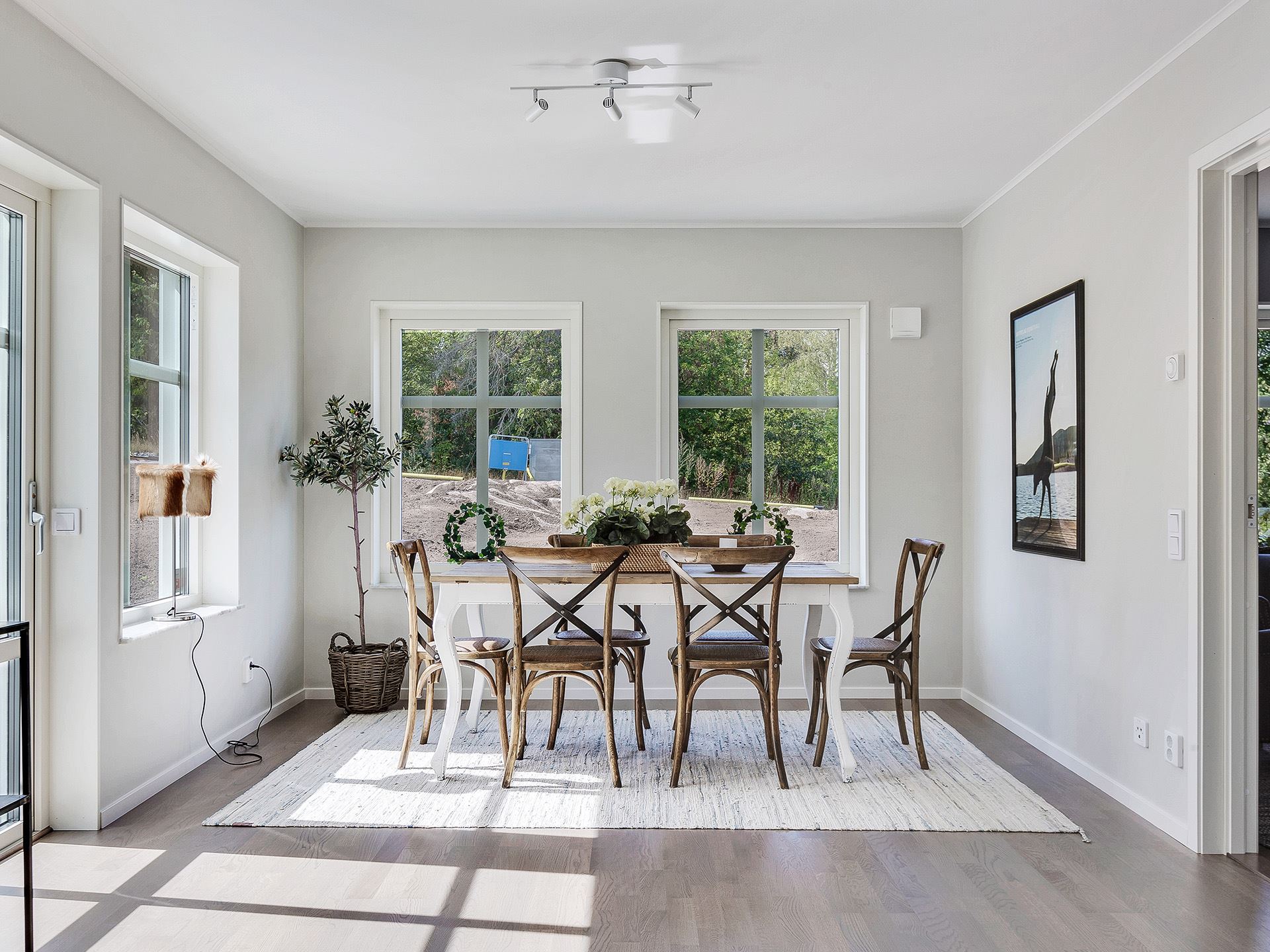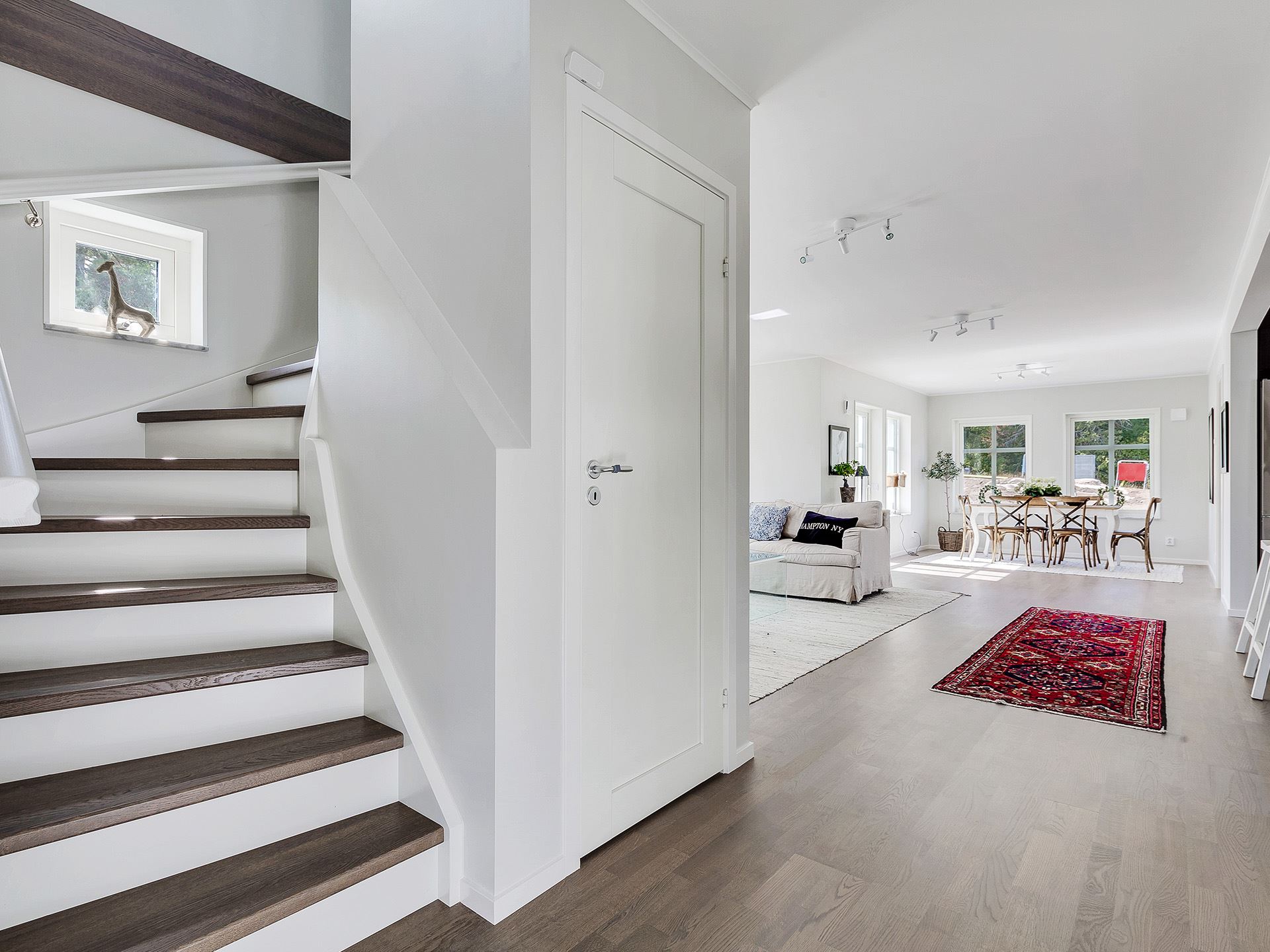 Planlösningen är i grunden likadan som vårt hus Ängsö, men här har jag lagt köket och tvättstugan närmare entrén och trappan vilket en del föredrar. Även badrummet är lite annorlunda utformat. På övervåningen finns ett större allrum, tre stora sovrum och gott om plats för förvaring, med två klädkammare och ett dressingroom.