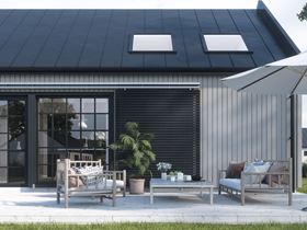 Den industriella stilen är inspirerad av vackra gamla industribyggnader, med de typiska småspröjsade fönstren som främsta kännetecken. Huset har grå funkispanel, markerade svarta detaljer och ett svart plåttak som kronan på verket. Samspelat mellan dessa material skapar en härligt inbjudande nutida tolkning av det industriella arvet.