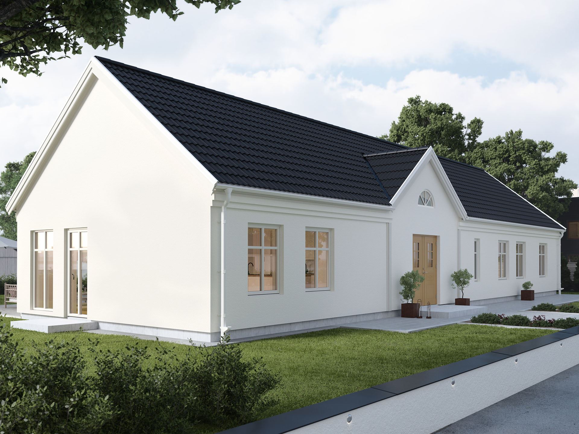 För den lantliga stilen har inspirationen hämtats från den skånska traditionen. Den havregula entrédörren för tankarna till landskapets åkrar och samspelet med naturen. De lantliga fasaderna ger uttryck för ett mer traditionellt utseende – med de ljust putsade väggarna, den nätta takfoten och det likformiga fönsterspråket.