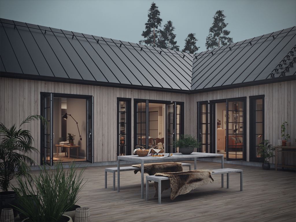 Om du önskar skyddade uteplatser, titta på våra enplanshus som är byggda i vinkel. Dessa hus kan anpassas efter din tomt, så att du kan få en härlig uteplats som kombinerar sol med skydd mot vind och insyn. Utöver detta så har vinkelbyggnader också fördelen att de bidrar med ett mer intressant utseende till husets exteriör.