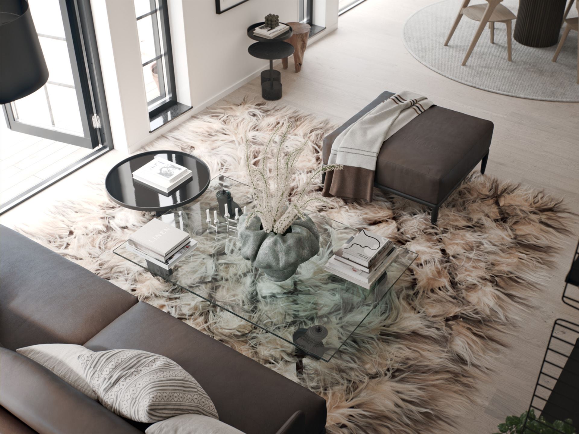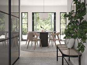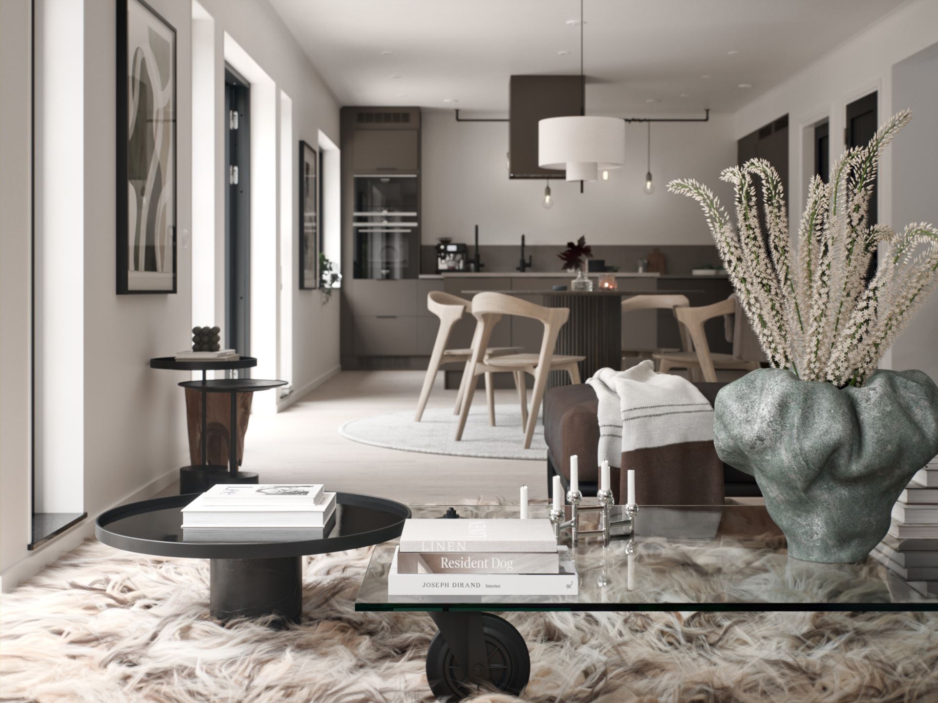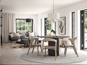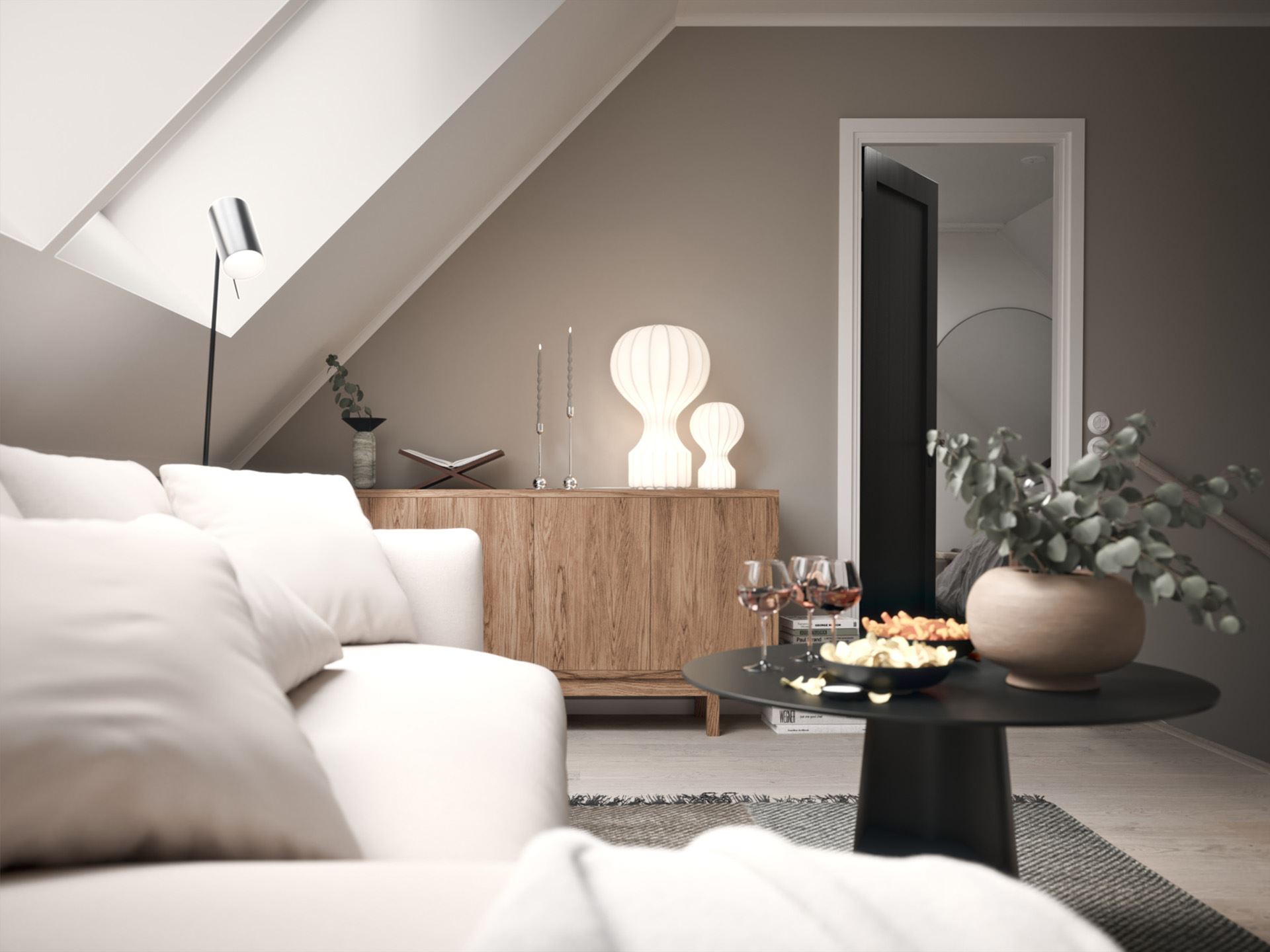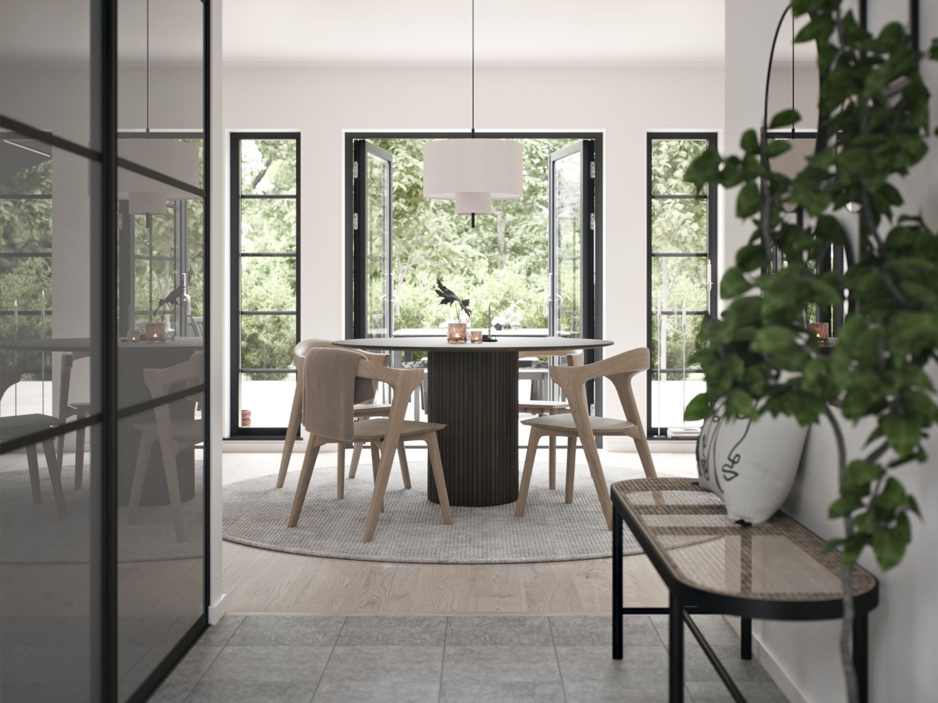 Direkt i entrén möts du av ett härligt ljusinsläpp och fint siktdjup. Husets umgängesytor är generösa. Kök, matplats och vardagsrum ligger i fil och upptar hela husets ena långsida – som flödar av ljus från stora fönsterpartier. I vinkel med vardagsrummet ligger husets kontor eller gästrum, som även kan integreras som en del av ett större vardagsrum om ni så önskar.
