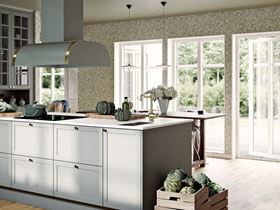 Pärldagg visar sin charm direkt i entrén. Här kan du antingen visa in dina gäster direkt till vardagsrummets härlighet, efter att ytterkläderna lämnats i kapprummet – eller smita direkt in i köket med dina matkassar. Det välplanerade köket serveras med fina fönster över diskbänken och riktigt skafferi. Tillsammans med matplatsen huserar det i mitten av huset, med smidig access till uteplatsen. Härifrån har du också fin kontakt med det inbjudande vardagsrummet som har en utsökt rymd och badar i ljus från tre väderstreck.