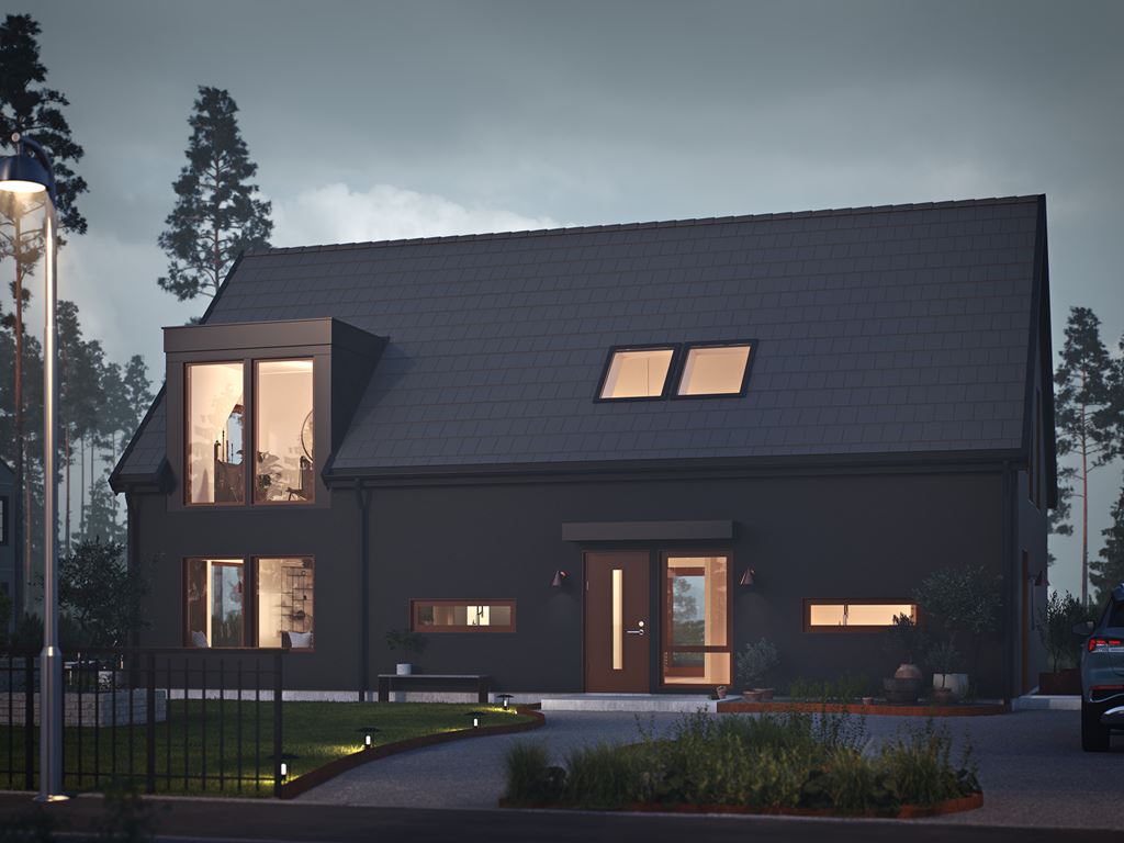 Skiffer är ett 1,5-planshus som sticker ut från mängden tack vare sin spännande planlösning. Det här är huset för dig som uppskattar en modern touch och nya designlösningar – och som vill ha gott om plats i totalt fyra sovrum, varav ett på entrévåningen.