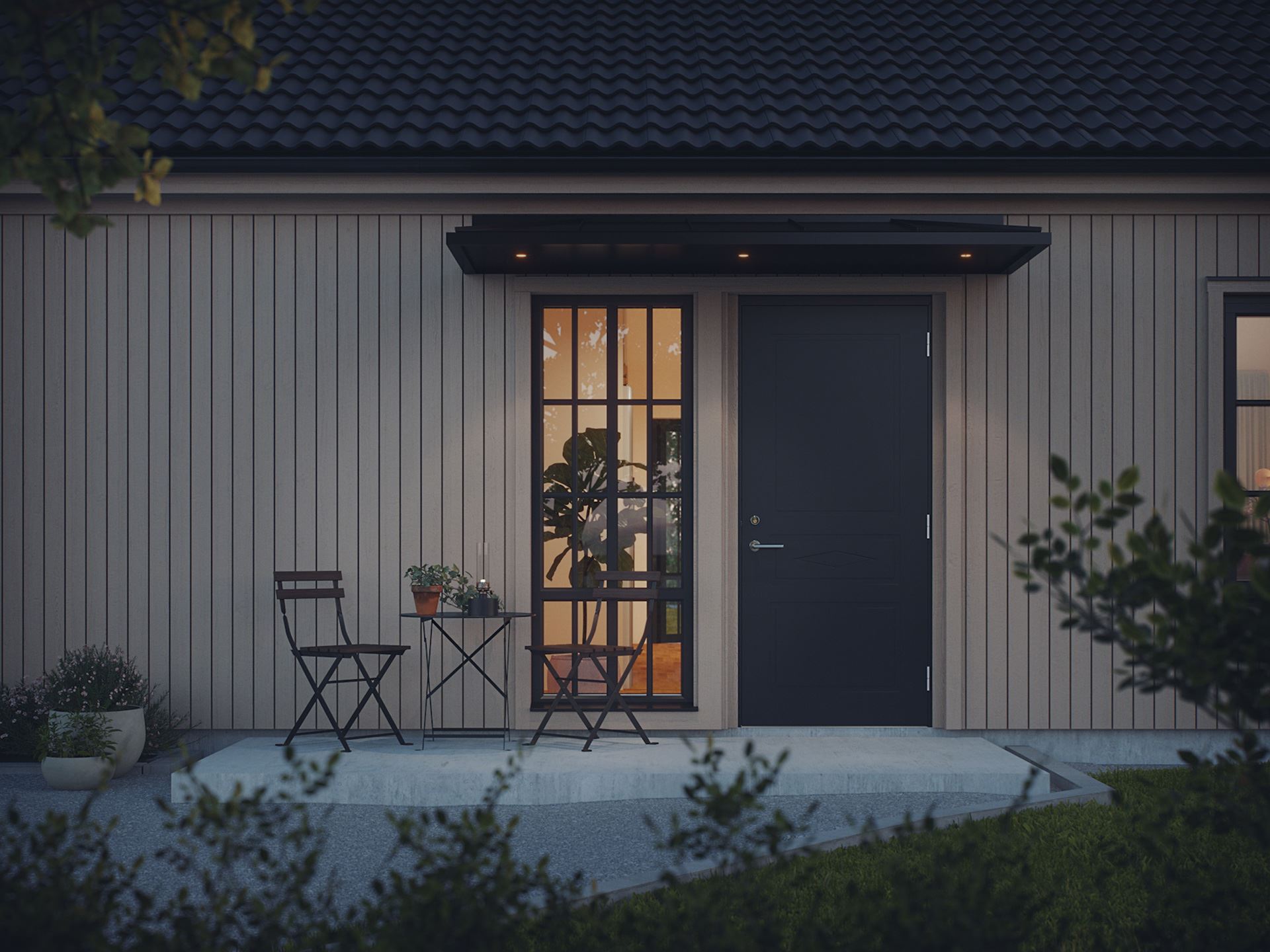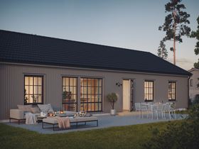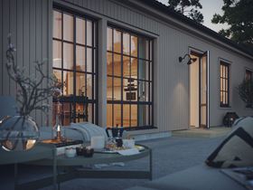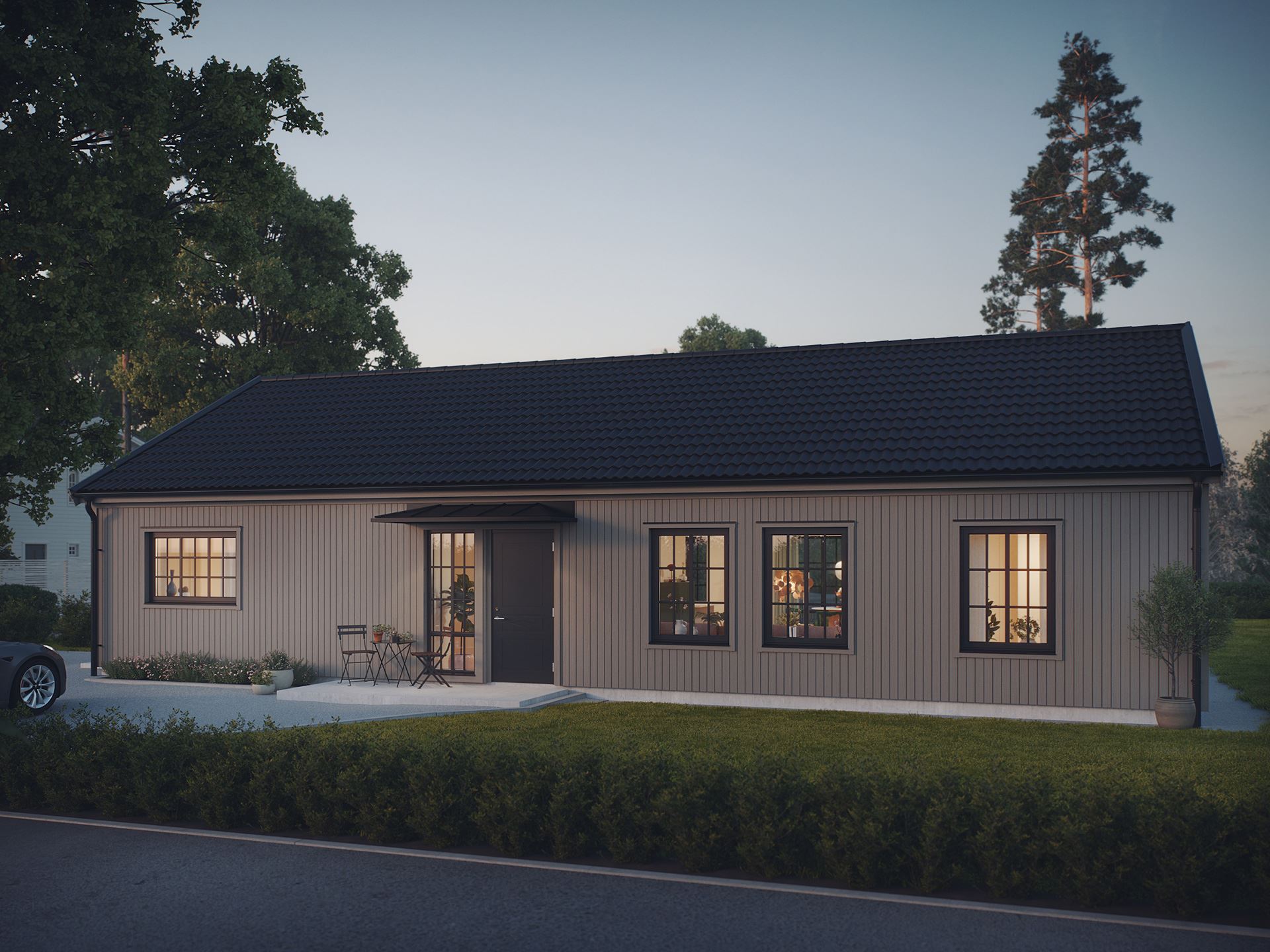Här ser vi Smart 117 i stilen Industriell. En husdröm med mycket karaktär, tack vare sina djärva kontraster och svarta småspröjsade fönster. Smart 117 erbjuds i två olika utföranden. Var och en med sin egen fönsterkonfiguration som tillsammans med färgsättningen ger stora möjligheter att skapa olika uttryck. Huset i detta utförande trivs också alldeles utmärkt i en mer traditionell lantlig stil, medan den moderna versionen med stora fönster utan spröjs i sin tur skapar stora stilrena möjligheter. Valet är ditt.