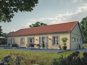 Upptäck Smart 125: ett enplanshus med 3-4 sovrum som även passar fint på en något mindre tomt. Här bor du enastående bra, med social öppen planlösning och separat barn- respektive föräldraavdelning – där master bedroom har egen walk-in-closet och egen toalett med dusch.