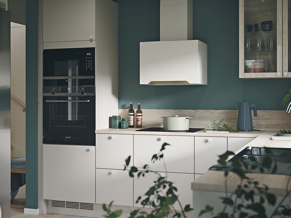 Direkt i entrén kan vi njuta av en fin siktlinje genom huset. Här hittar vi också ingången till badrummet, en härligt praktisk klädkammare – eller kapprum, om man vill vara lite mer traditionell, och den fina tvättstugan med groventré. Sedan tar husets sociala härlighet vid, med ljusinsläpp från tre väderstreck och dubbla utgångar till uteplats och trädgård. Smart 133 har en alldeles lagom öppen planlösning för kök och vardagsrum, inklusive ett l-format kök i sin egen rätt.