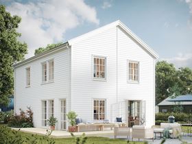 Vår version av den ikoniska New England-stilen handlar om känslan av ett hus vid havet. Smart 133 i New England-stil är tydligt influerat av den amerikanska östkusten, men med en nypa nordisk minimalism. Vit träpanel, ståtligt spröjsade vita fönster – och välkommen kontrast i form av tak, detaljer och dörrar i svart. Som ett klassiskt New England-hus, men samtidigt skandinaviskt stilrent. Vad mer kan man önska sig?