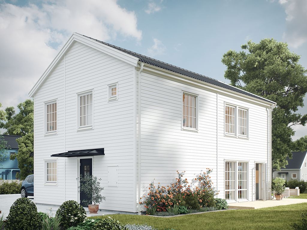 Vår version av den ikoniska New England-stilen handlar om känslan av ett hus vid havet. Smart 133 i New England-stil är tydligt influerat av den amerikanska östkusten, men med en nypa nordisk minimalism. Vit träpanel, ståtligt spröjsade vita fönster – och välkommen kontrast i form av tak, detaljer och dörrar i svart. Som ett klassiskt New England-hus, men samtidigt skandinaviskt stilrent. Vad mer kan man önska sig?