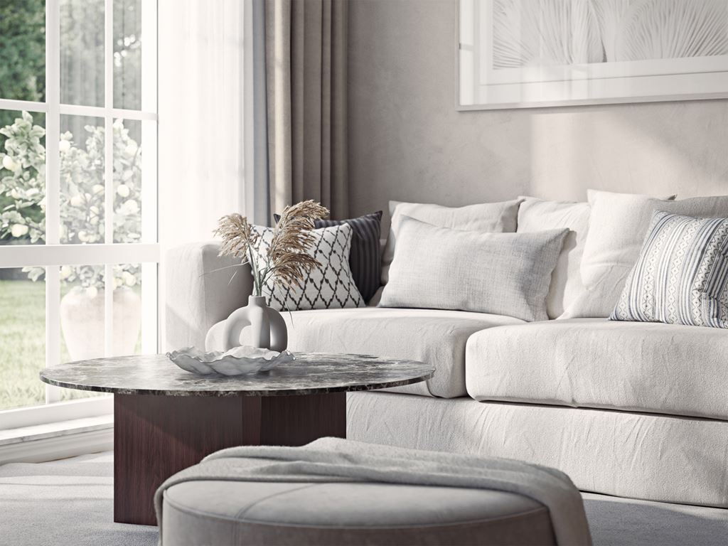 Smart 148 får New England-känsla i vår skandinaviska tappning, med Ocean Living, genom att huset är färgsatt i en färgskala som för tankarna mot kusten. Husets vita fasad, fönster och plåtar ger en krispig känsla som bryts av mot det svarta taket och entrédörren. Mot gatan har huset en symmetrisk fönstersättning med ett vertikalt fönsterspråk. Här ser vi även det typiska entrétaket för husseriens Ocean Living-stil, ett stiligt svart sådant som skapar en distinkt och välkomnande entré. Den liggande panelen, de nätta takfötterna, de spröjsade fönstren och sadeltaket skapar husets karaktär – känslan av ett hus vid havet.