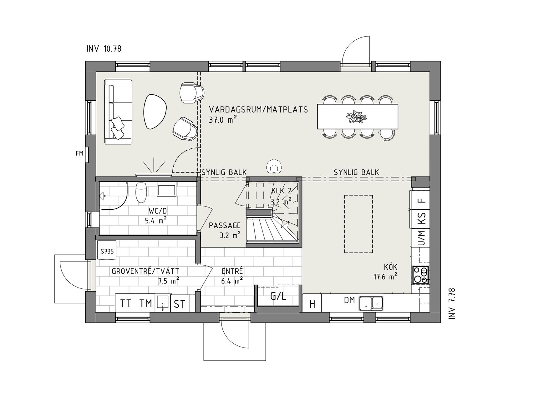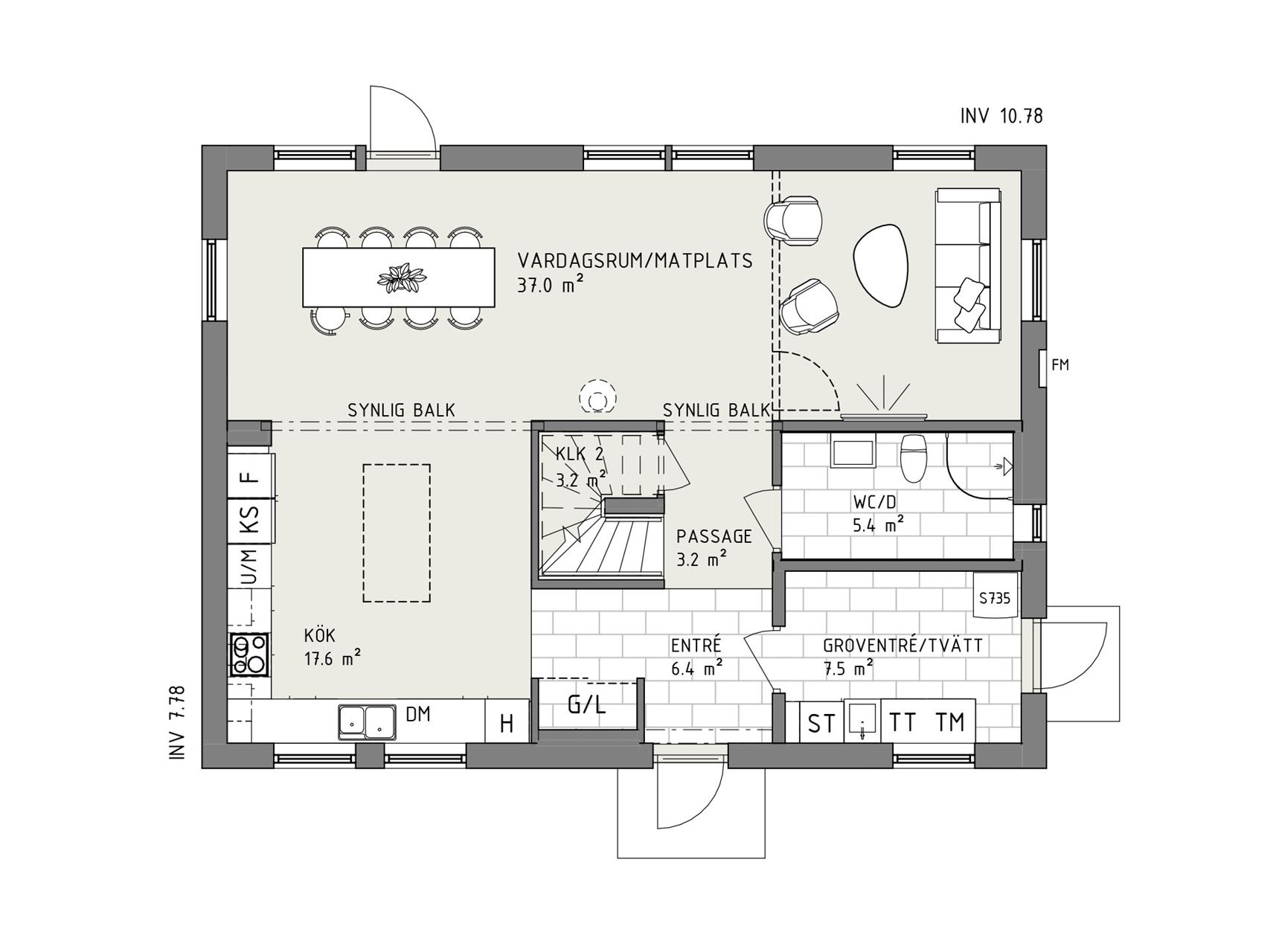 I Smart 166 möts du direkt av ljuset från den generösa fönstersättningen i vardagsrummet. Entrévåningen stäcker ut sig kring den centralt placerade trappan, vilket skapar ett naturligt flöde genom huset. Husets sociala ytor med kök och vardagsrum har en fin öppen planlösning som ändå ger en trivsam rumskänsla. Köket ligger nämligen i vinkel, vilket också bäddar för bra arbetsytor.