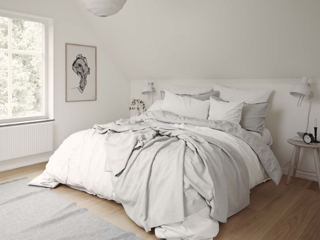 Solstrimmas andra del är konstruerad som ett 1,5-planshus och rymmer husets privata oaser. På entréplan hittar vi tre sovrum, varav ett med egen klädkammare, toalett med dusch och ett genomgångsrum som passar utmärkt för en arbetsplats. Självklart finns här också en praktisk tvättstuga. En trappa upp väntar sedan ett master bedroom i särklass, där snedtak och takfönster bjuder på ljuvlig loftkänsla. Här uppe finns också ett mindre allrum, husets stora badrum och en generös klädkammare.