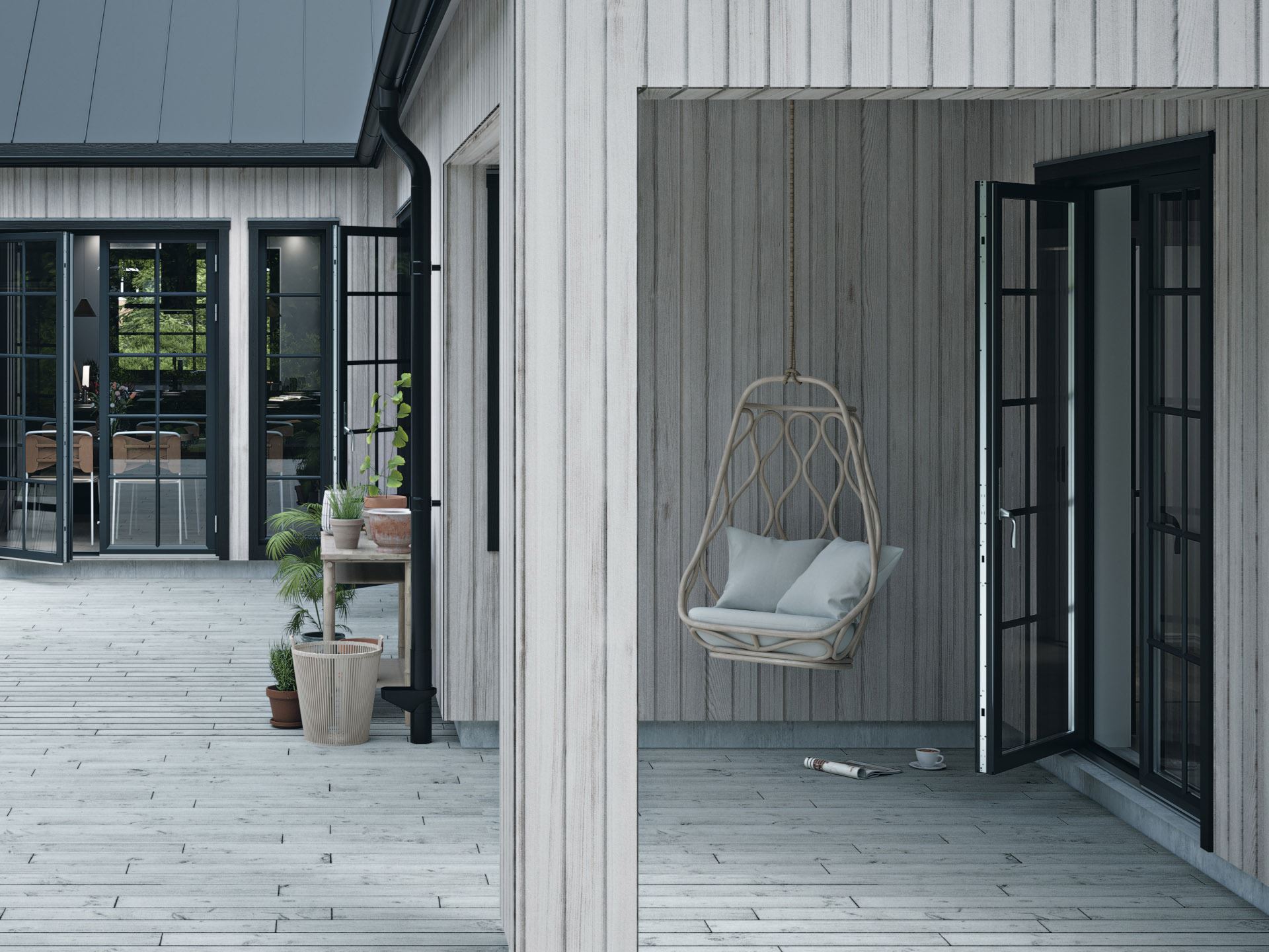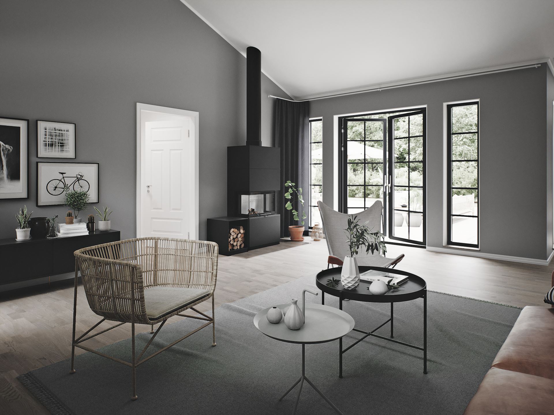 – Jag har alltid haft ett öga för den danska arkitekturen där det är raka linjer, enkelt och ljust. Det var också därifrån jag hämtade min inspiration när jag ritade Nymåne. Den moderna tolkningen av Nymåne inspireras även av funkisstilen och har pulpettak med kringbyggda sarger för att ge ett kubiskt uttryck. Den industriella stilen presenteras istället med sadeltak och industrifönster. Sedan har jag tagit fram en modern tolkning av vår lantliga stil med spröjsade fönster och en monokrom färgsättning.