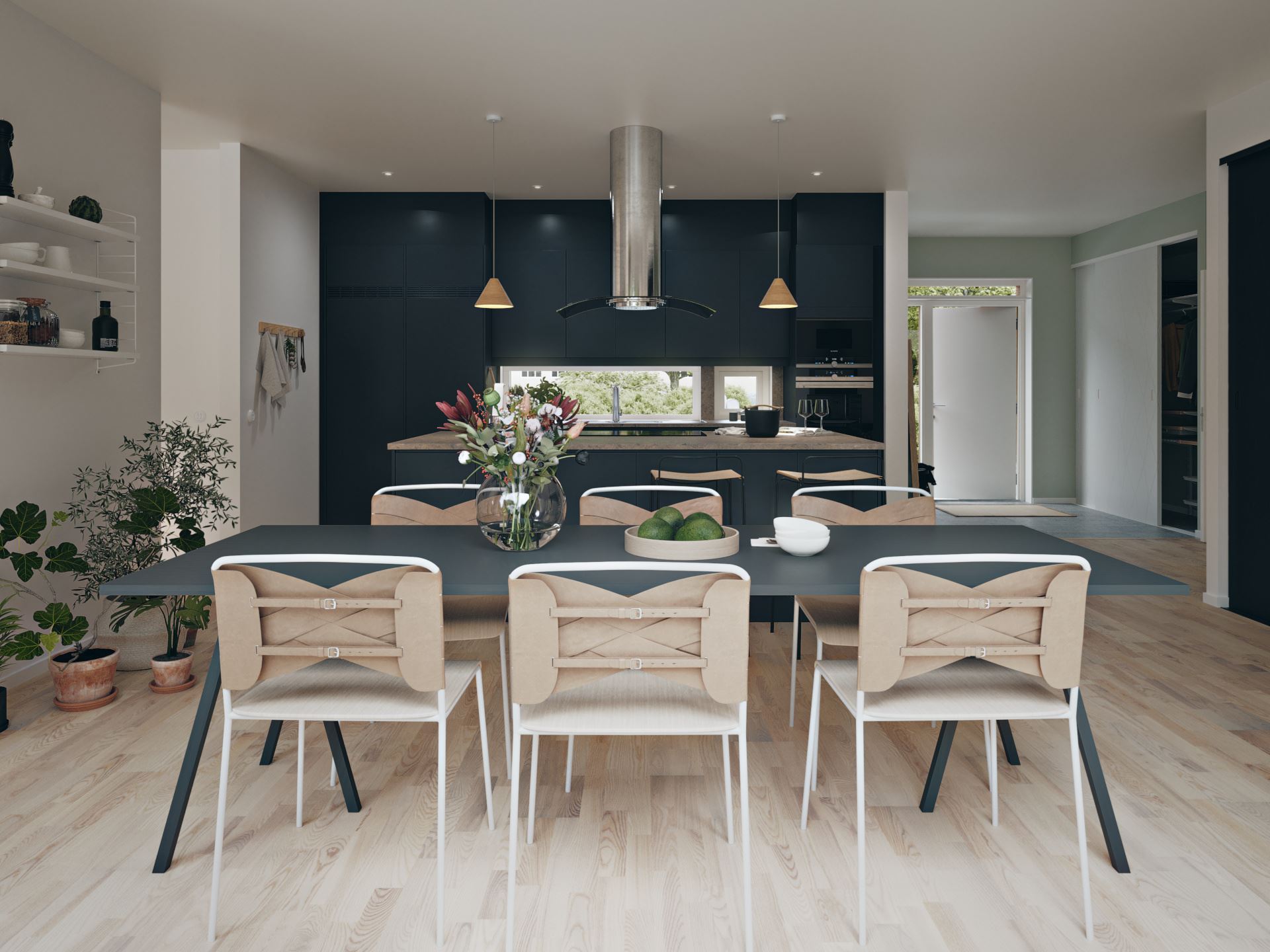 – Det första man bör tänka på är vilka funktioner man vill att huset ska fylla. Vem ska bo där? Hur många sovrum behöver det ha, storleken på tvättstugan, vilket typ av kök man önskar? Ska det vara ett 1-planshus eller ett 2-planshus? Därefter är det lättare att planera husets planlösning och disposition av rummen. När jag skissade fram Nymåne ville jag ta fram ett hus som fungerar för olika generationer och som ger möjlighet att växa i, förklarar Frida.