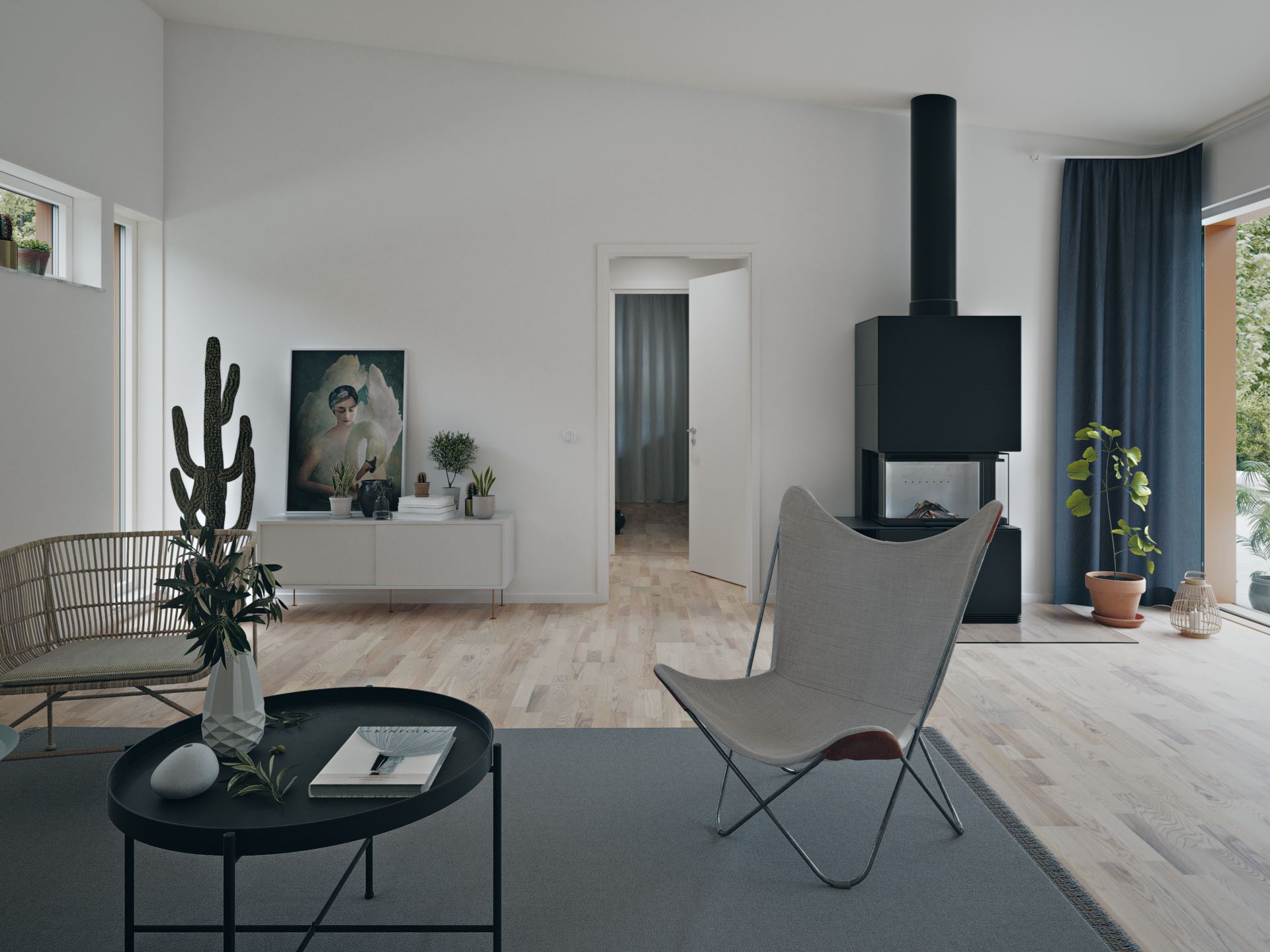 Nymåne ingår i vårt koncept Select: där vi presenterar husen i flera olika stilar. Här väljer du en grundstil som du sedan enkelt kan låta löpa vidare som en röd tråd genom hela huset – både exteriört och interiört. Det här gör det också lättare att visa upp möjligheterna med huset, menar Frida. Och inspirationen till Nymåne kommer från ett land som är välkänt för sin design.