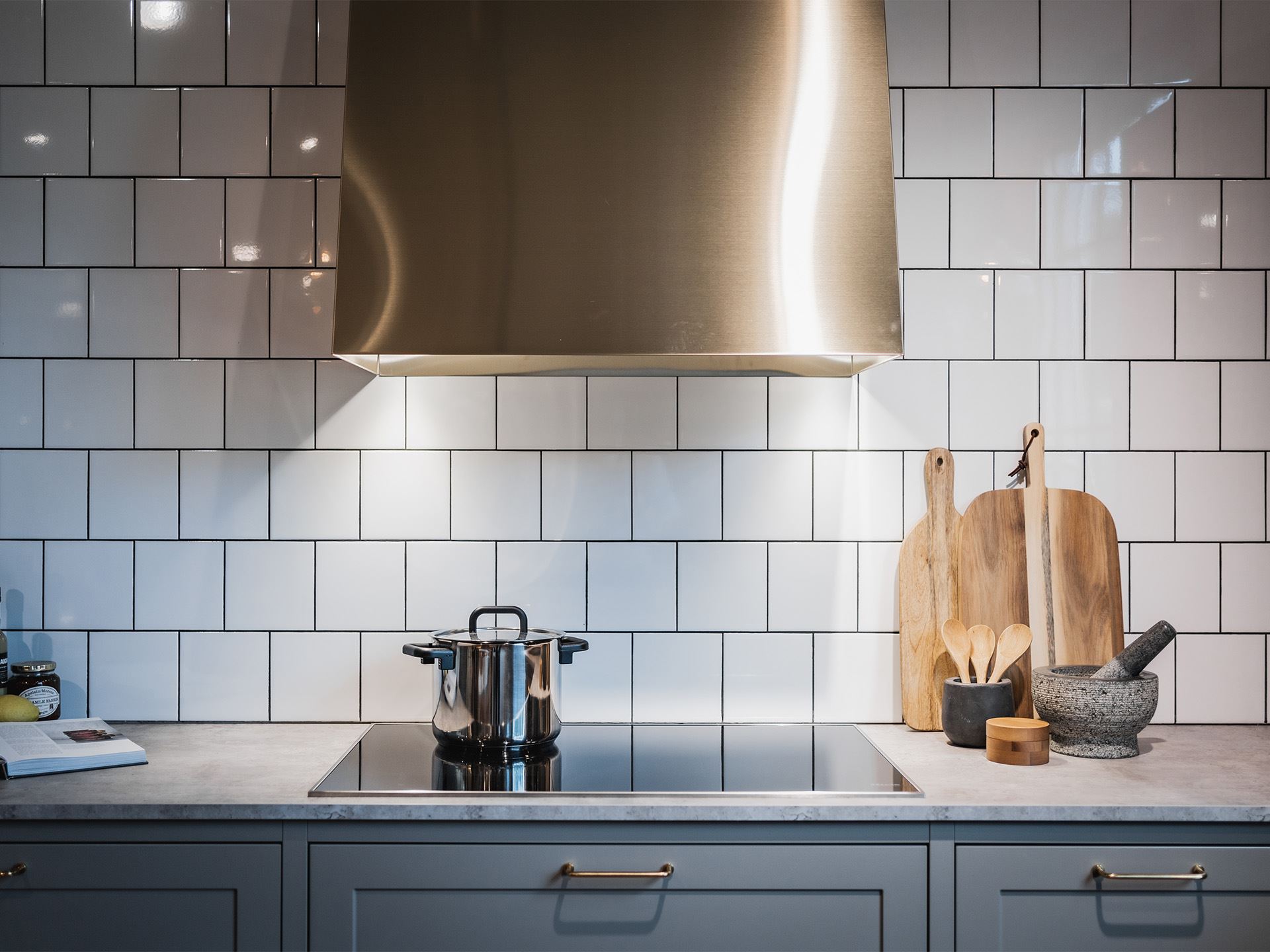 • Fundera på fläkten: antingen kan den vara en snygg detalj som tar för sig ordentligt, eller helt dold i både tak och skåp.