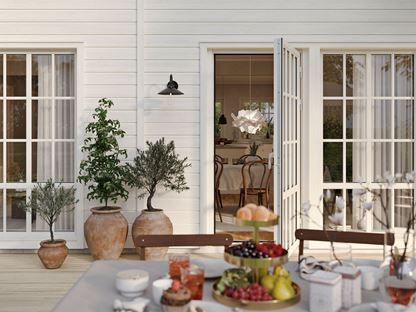 Är det ett uterum du fastnat för? Då behöver du fundera på hur isolerat du vill att det ska vara. Ju mer isolering, desto mer kan du förlänga säsongen – men det gör det också dyrare att bygga ditt uterum. Detsamma gäller om du vill kunna öppna upp ditt uterum helt, stora lyxiga skjutdörrspartier kostar också en bra slant. Det finns flera olika firmor som specialiserat sig på byggsatser till uterum, där kan vara värt att ta en titt för att få en uppfattning om utbud och priser. Om du planerar att bygga uterum själv: se till att du vet vad du gör, så att du inte drar på dig några fuktproblem. Och en sak till: om du redan från start har tankar på var du vill ha ditt uterum, prata med din säljare så att dina planer tas med i beräkningen när vi ritar upp ditt hus.