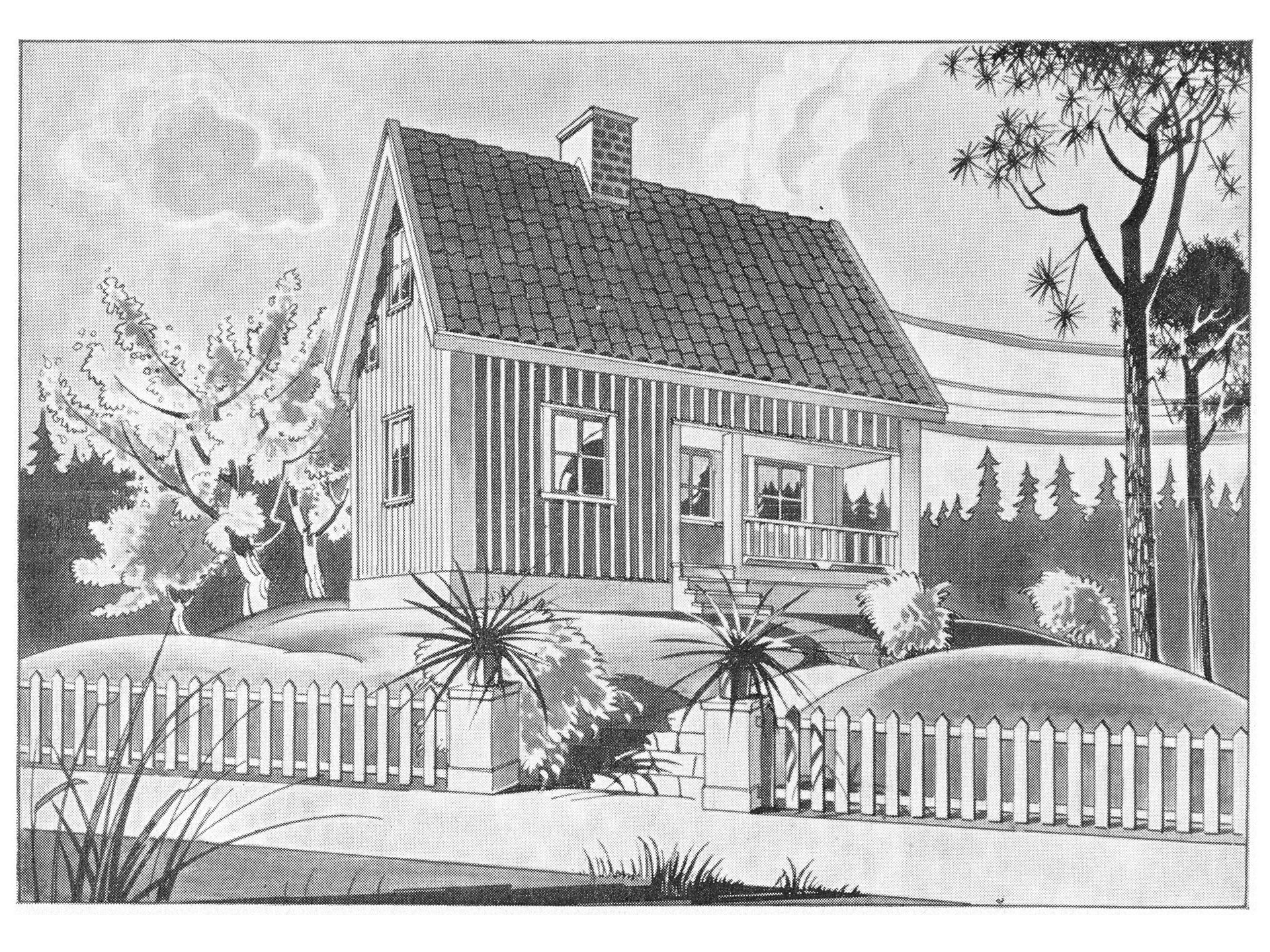 Kan nu meddela, att det hus, typ Dalbo, jag köpt av Eder, har utfallit till min och min familjs belåtenhet. Materialet var förstklassigt och konstruktionen enkel och praktisk. Uppförandet gick på ganska kort tid, tack vare den goda passformen på materialierna. Villan kostar mig nu fullt färdig, kronor 6,500.