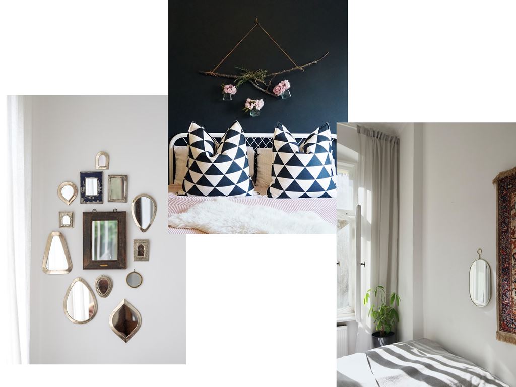 Sanningen är att det inte behöver vara bara de traditionella sakerna som sitter på väggen. Sätt upp en fin spegel mitt i tavelväggen eller skapa en spegelvägg med mängder av speglar i olika storlekar och former. Växter och blommor sätter du upp med hjälp av väggkrukor, i små provrör eller om du har plastblommor som du kan fästa direkt på väggen.