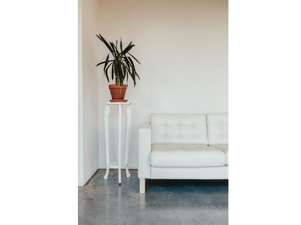 För att dekorera en tom vägg behöver man inte ens röra väggen om man inte vill. Låt inredningen stå på golvet. En vacker golvlampa, en tjusig fotölj, en stor grönskande växt eller en pedistal.