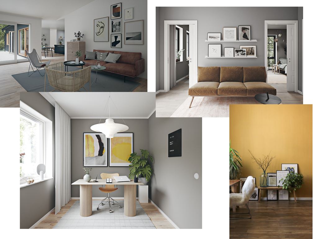 Sedan urminnes tider har det varit tavlor som gäller på väggarna. Men tänk gärna utanför boxen! Komnbinera olika slags tavlor och färger. Ska de gå ton i ton, har du en vit vägg och vill ha en färgklick? Och blir det enbart ett par få bilder eller en hel tavelvägg? Den enhetliga tavelväggen är långt borta nu, leta efter spännande ramar i olika storlekar och former på second hand.