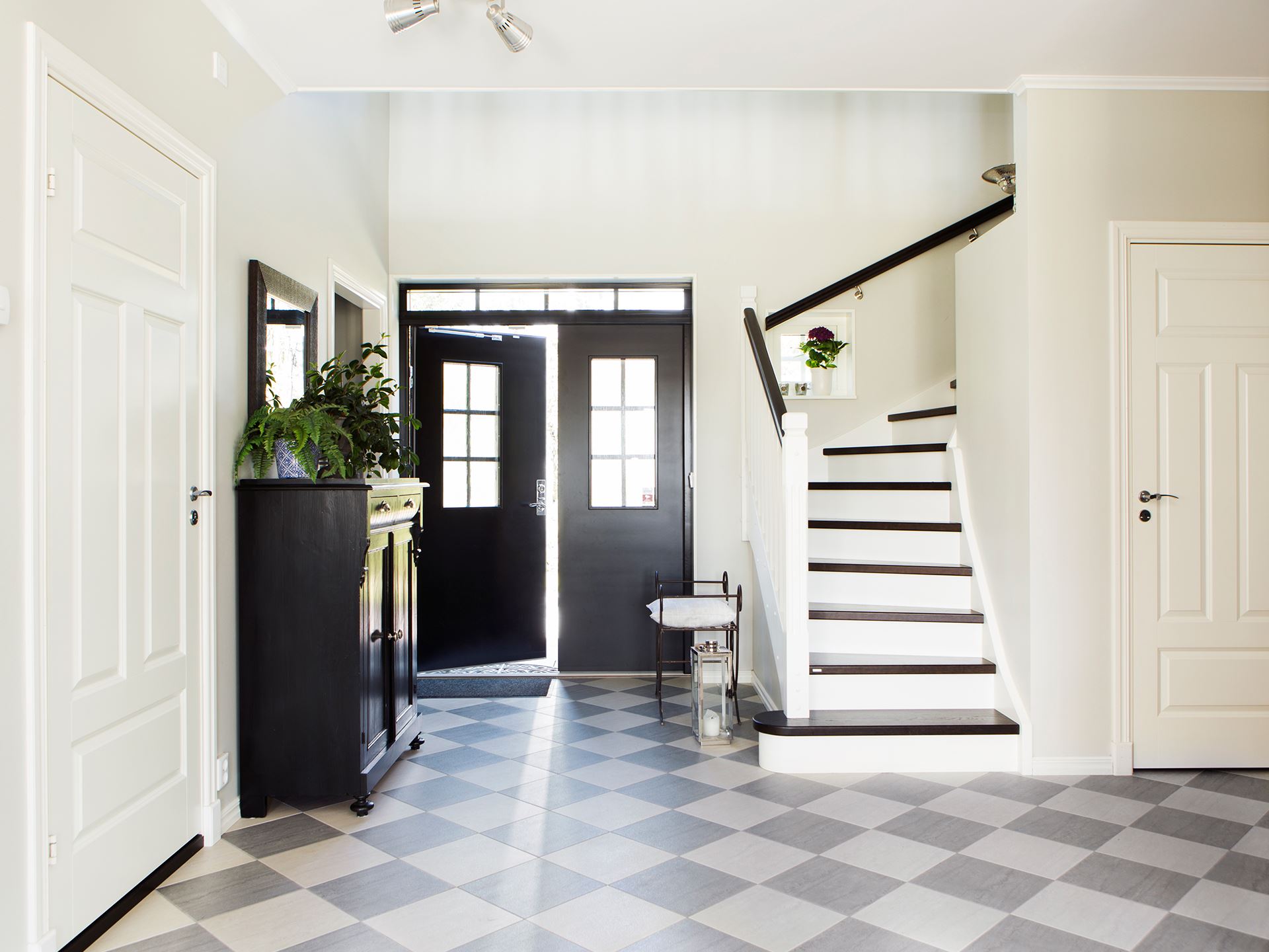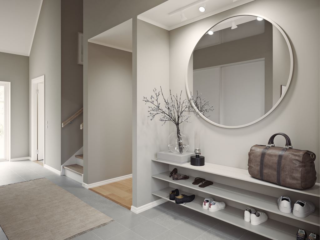 Svar: Det finns många detaljer som kan bidra till en personlig touch i hallen. Lampor, mattor, speglar förvaringsboxar, knopplister – med mera. Gröna växter, konstverk på väggarna och andra dekorationer är också små detaljer som kan göra stor skillnad.