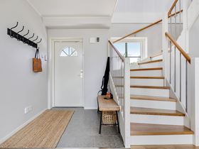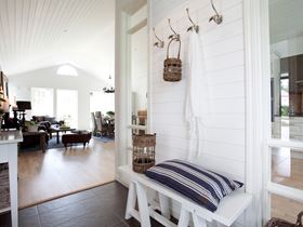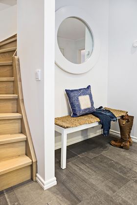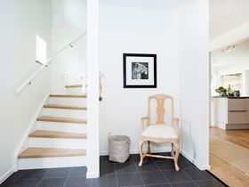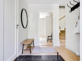 Svar: Genom att välja naturliga material som trä och textilier, och att organisera förvaring och avhängning på ett funktionellt sätt med gott om utrymme för skor och ytterklädekan kan du enkelt skapa en välkomnande atmosfär i hallen. Glöm heller inte belysningen.