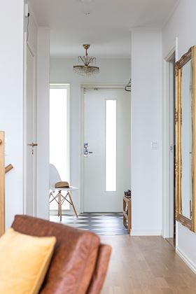 Svar: Det finns många detaljer som kan bidra till en personlig touch i hallen. Lampor, mattor, speglar förvaringsboxar, knopplister – med mera. Gröna växter, konstverk på väggarna och andra dekorationer är också små detaljer som kan göra stor skillnad.