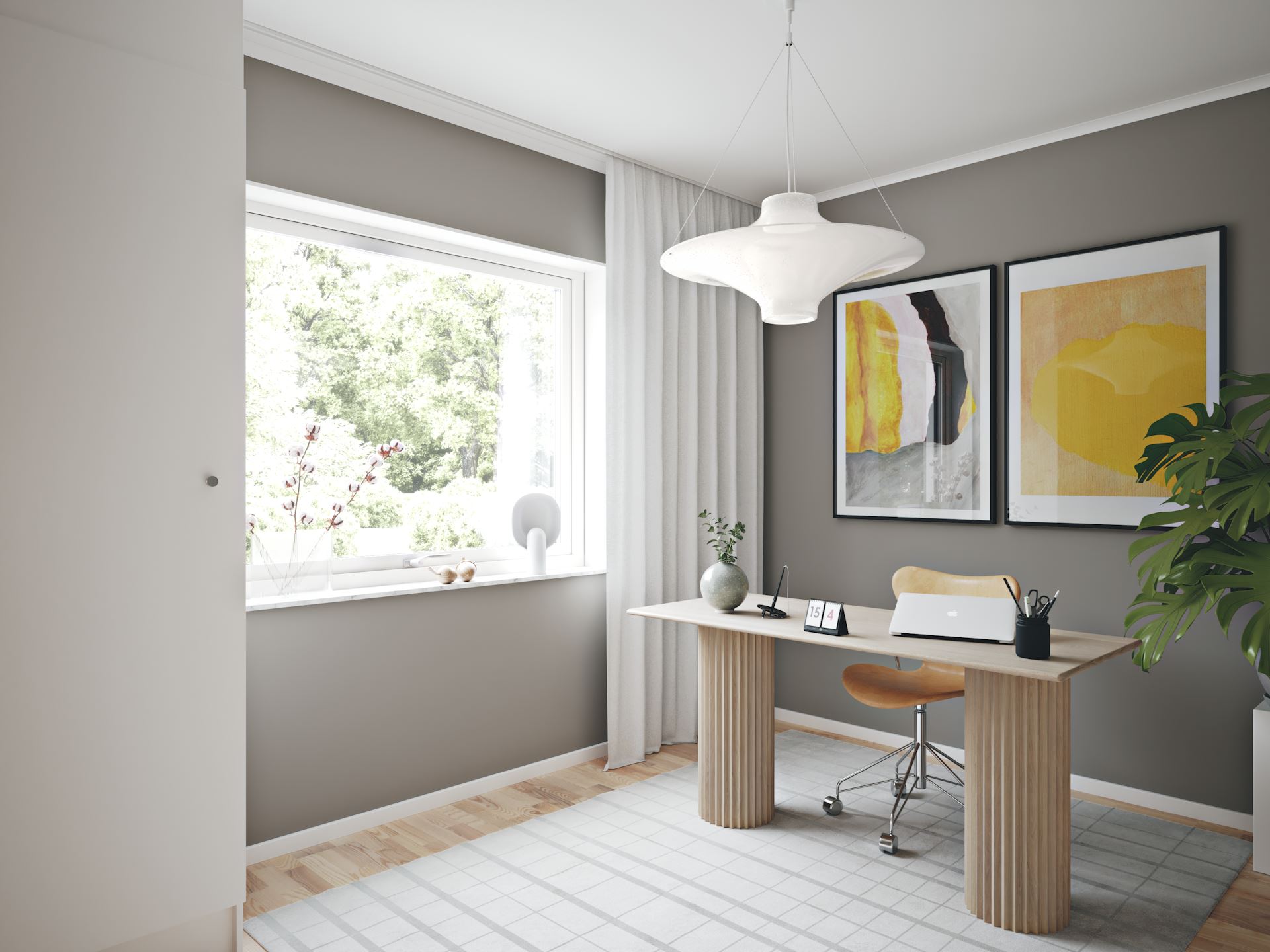 Bland Myresjöhus olika husmodeller finns fina möjligheter att kunna jobba hemifrån, det har våra arkitekter tänkt på redan på ritbordet. Vissa husmodeller har designerade arbetsytor, i andra kanske du tar ett av husets sovrum i anspråk. Blir hemmakontoret sedan ljust och stilrent, klassiskt elegant – eller kanske färgstarkt och kreativt? Det bestämmer du. När du bygger nytt har du alla möjligheter att skapa ett hemmakontor i din personliga stil.