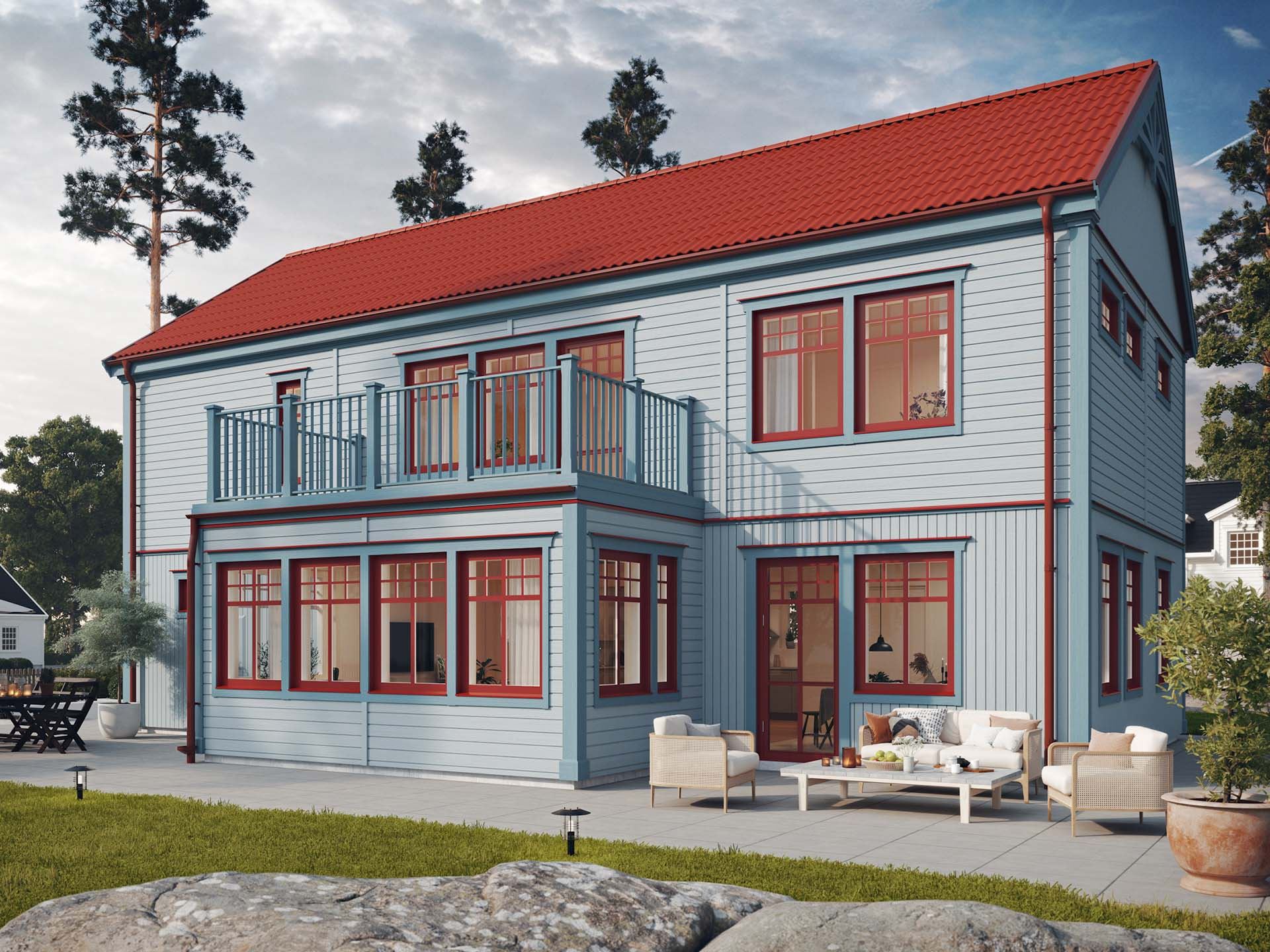 Toppkandidaten för ett modernt hus med den rätta känslan av herrgård är vårt vackra Ekdunge. Stort och pampigt, ljust och luftigt – ja, allt man kan önska sig. Till och med en klassisk serveringsgång. Ekdunge finns dessutom både i lantlig stil och i sekelskiftesstil. Men tänk på att det här är ett stort hus, som kräver en rejäl tomt för att komma till sin fulla rätt.