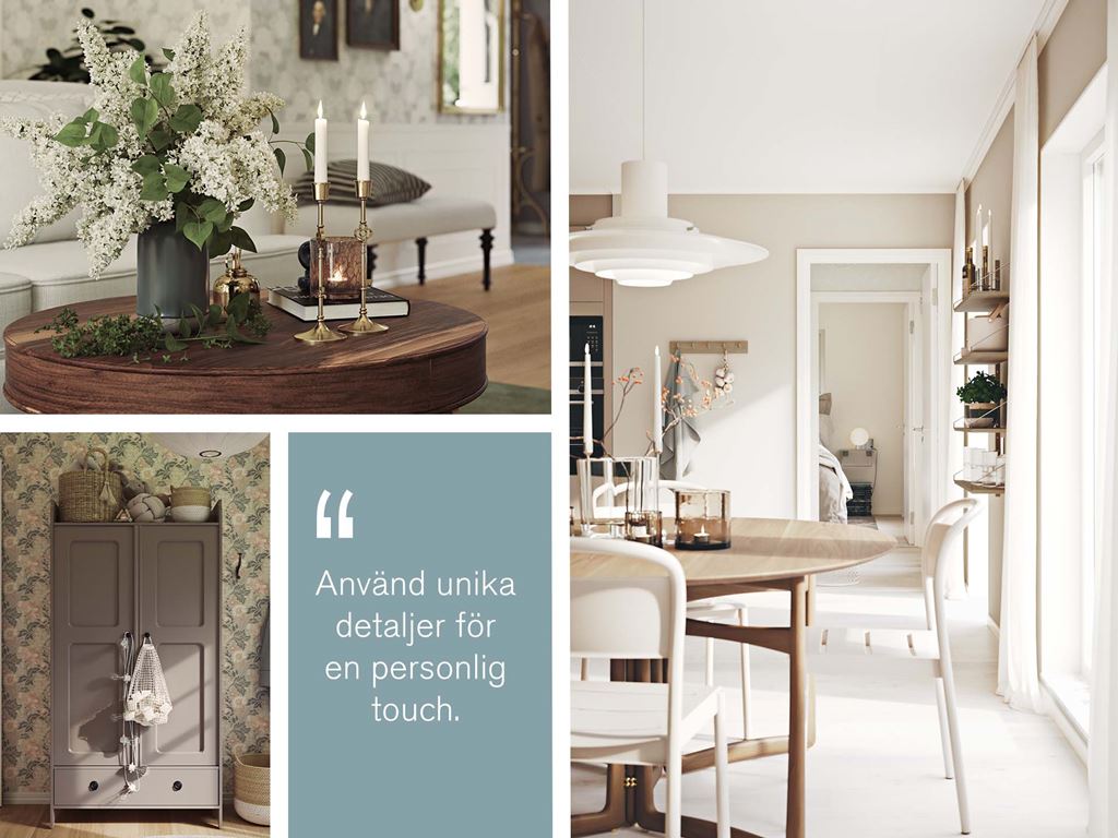 Genom att ha ett genomgående tänk när du inreder skapar du en sammanhängande och harmonisk atmosfär som genomsyrar hela ditt hem.