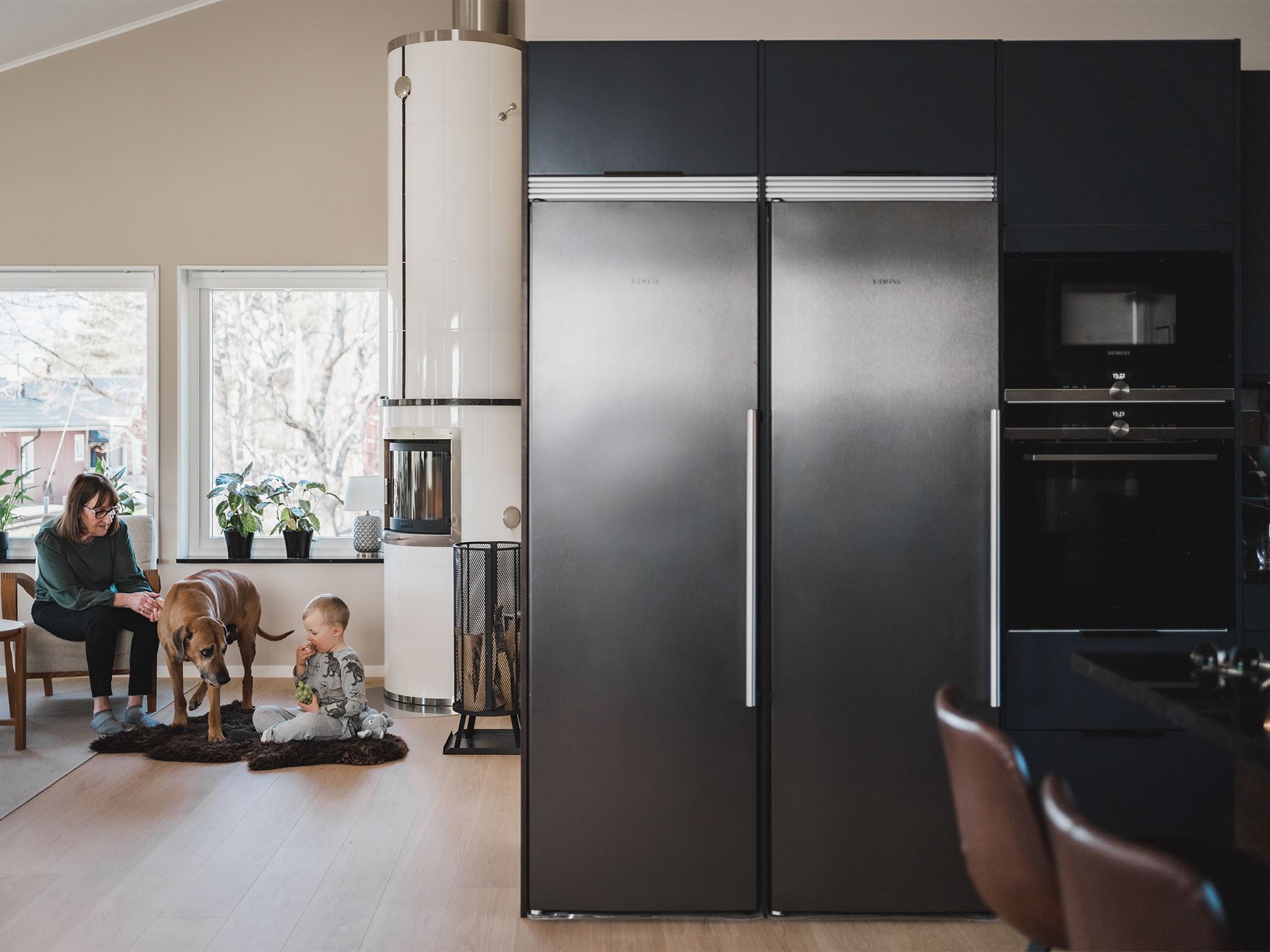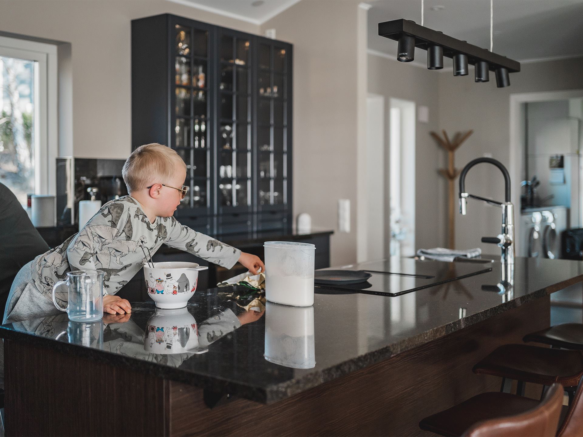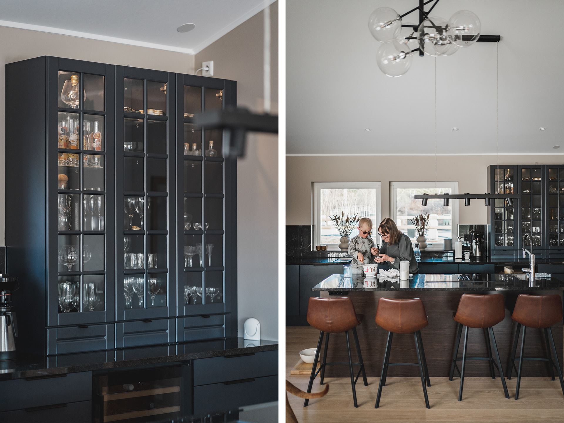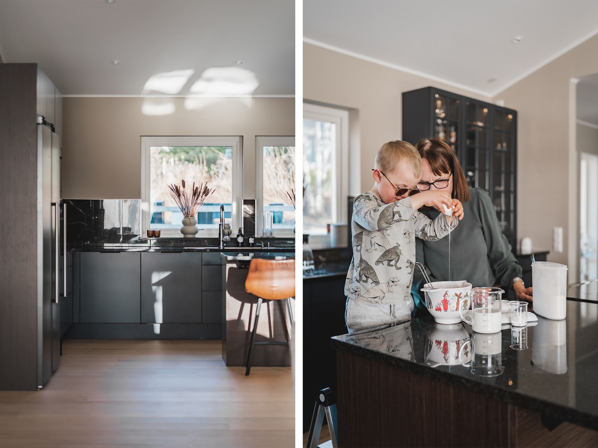 Kerstins favoritdel i huset är köket och det märks att hon fått bestämma kring utrymmet. På hennes önskelista fanns ett stort kök med stenbänk, bra ytor för matlagning och bakning. Bakning verkar nämligen stå på schemat titt som tätt och Kerstin berättar att även de äldre barnbarnen ibland ringer och frågar om de får komma över och baka bullar.
