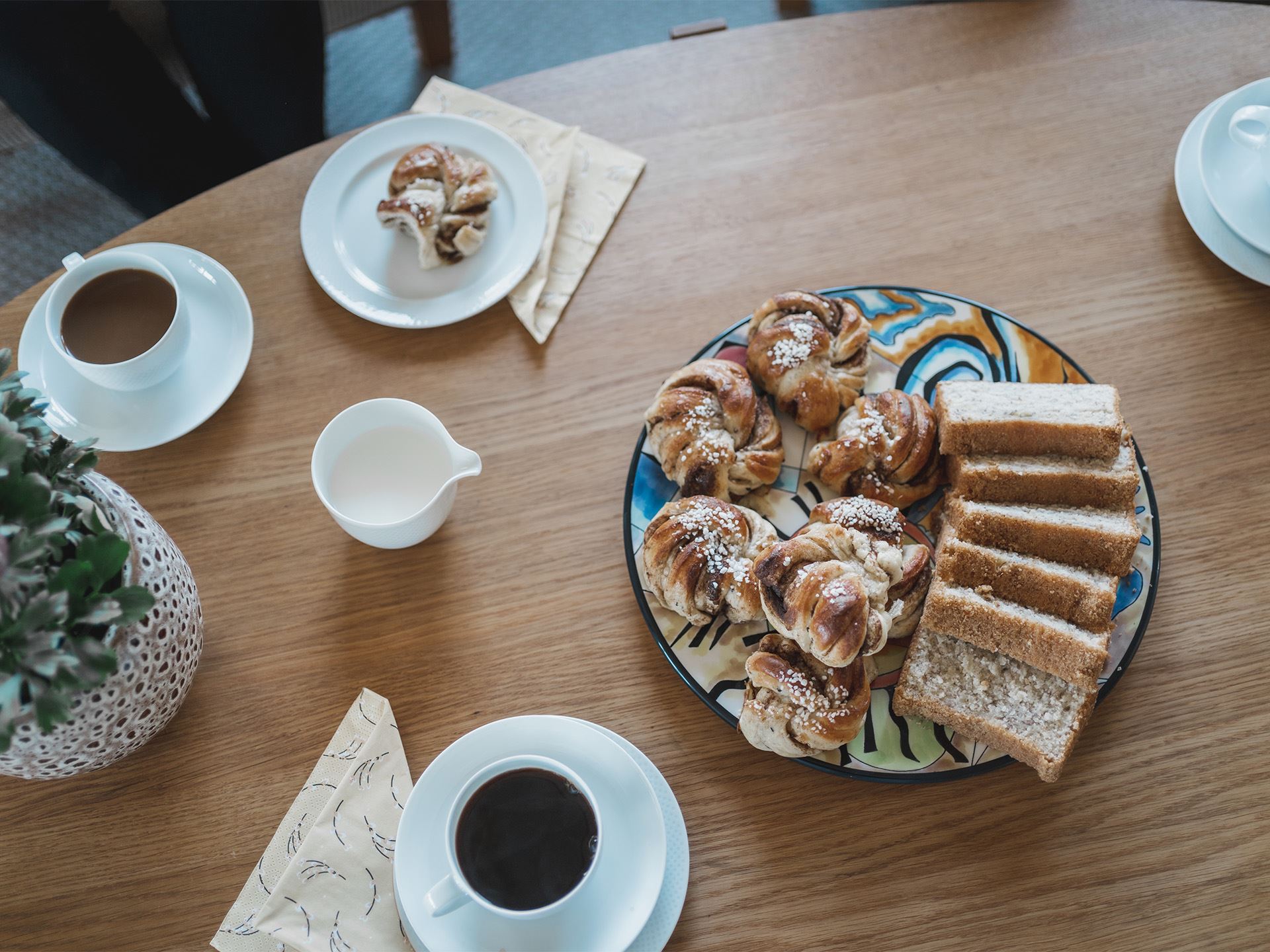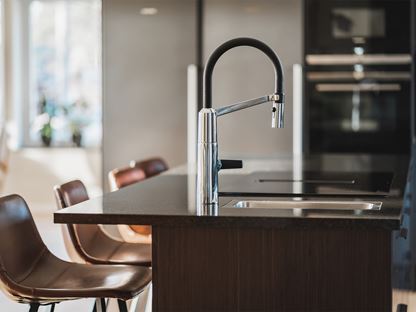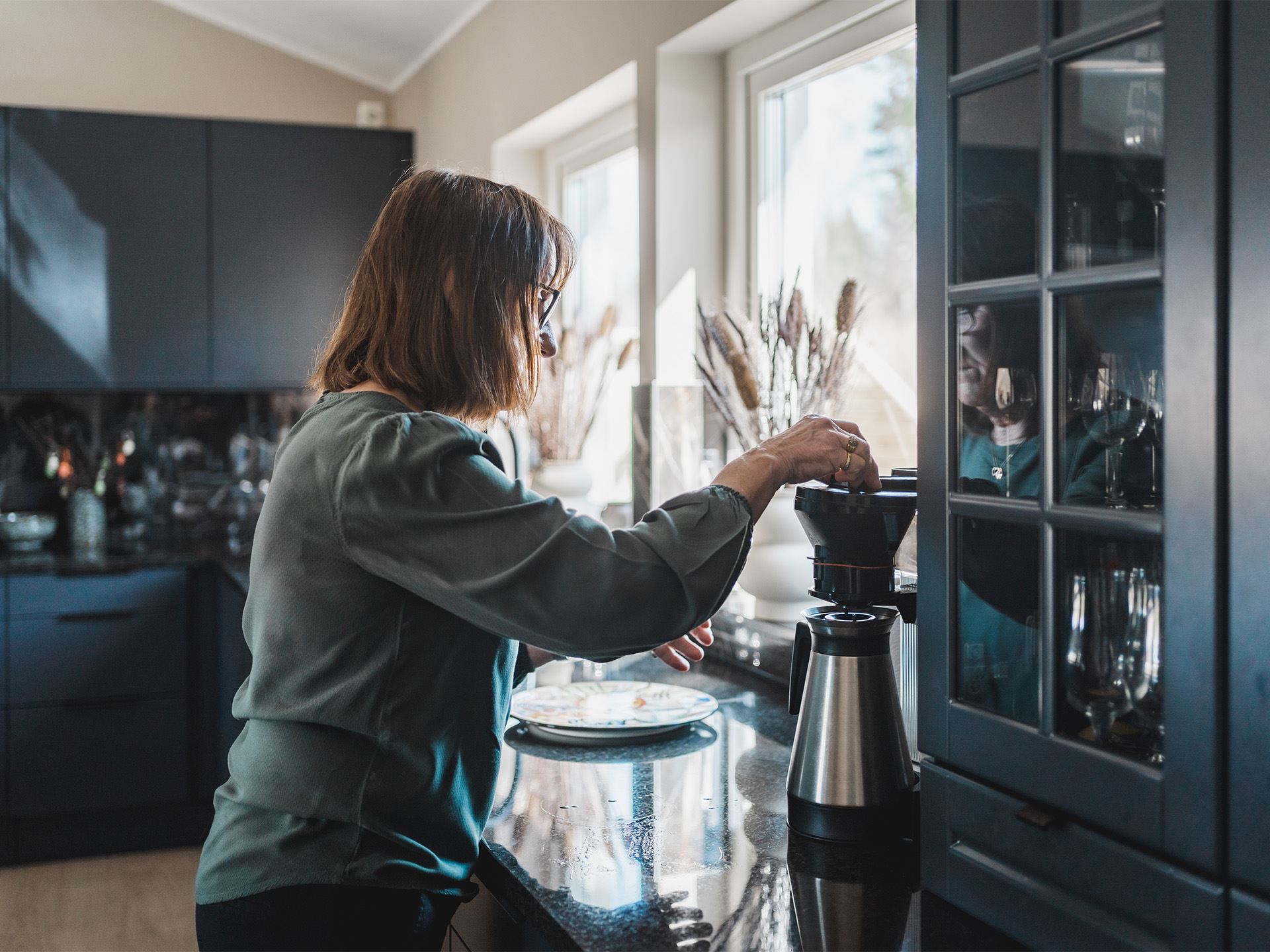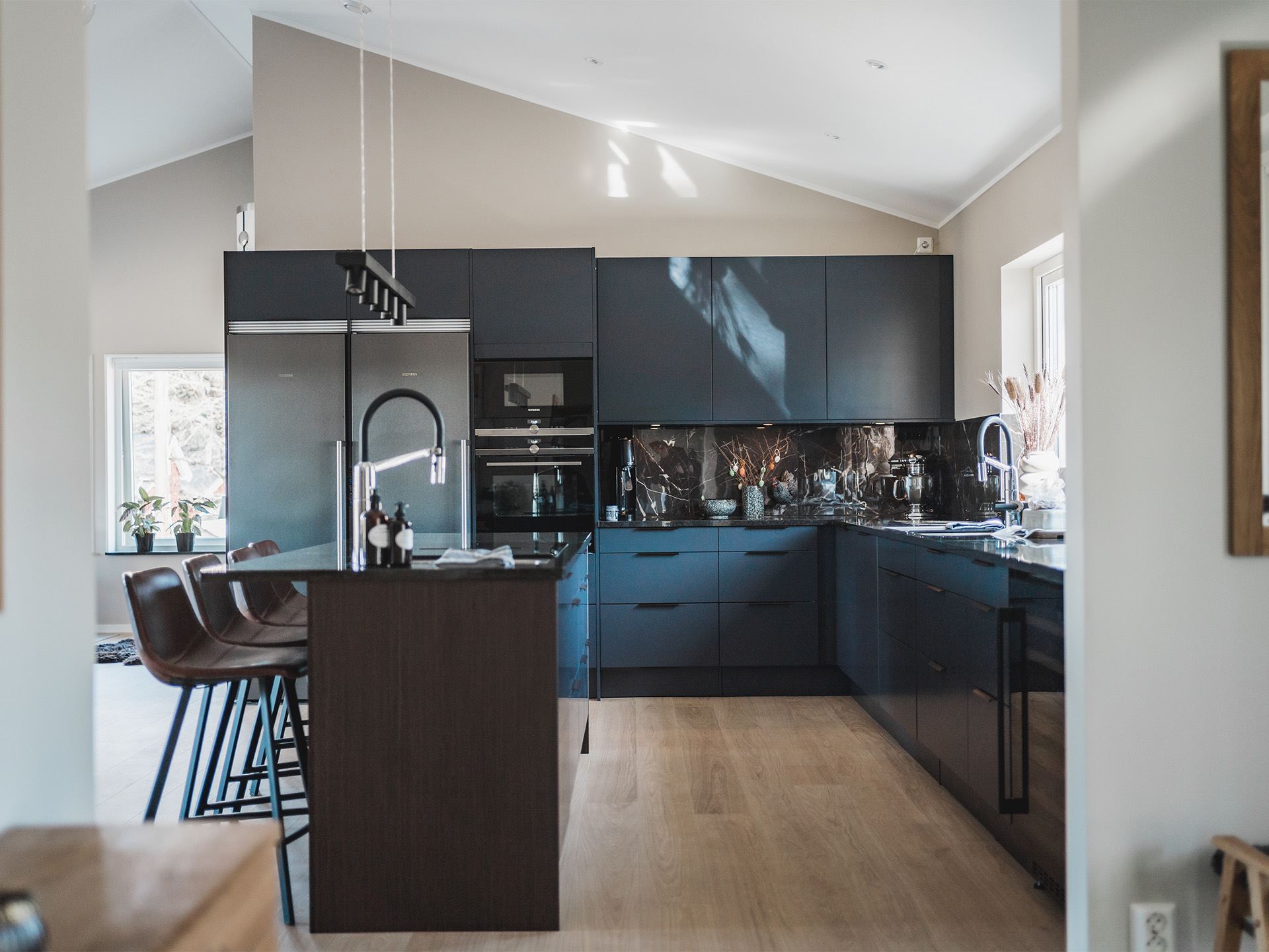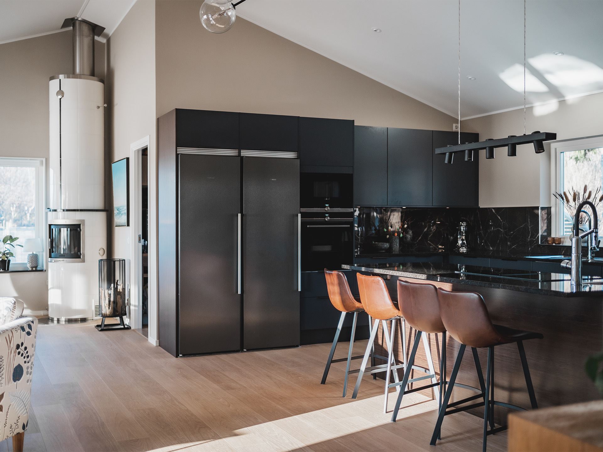 Kerstins favoritdel i huset är köket och det märks att hon fått bestämma kring utrymmet. På hennes önskelista fanns ett stort kök med stenbänk, bra ytor för matlagning och bakning. Bakning verkar nämligen stå på schemat titt som tätt och Kerstin berättar att även de äldre barnbarnen ibland ringer och frågar om de får komma över och baka bullar.