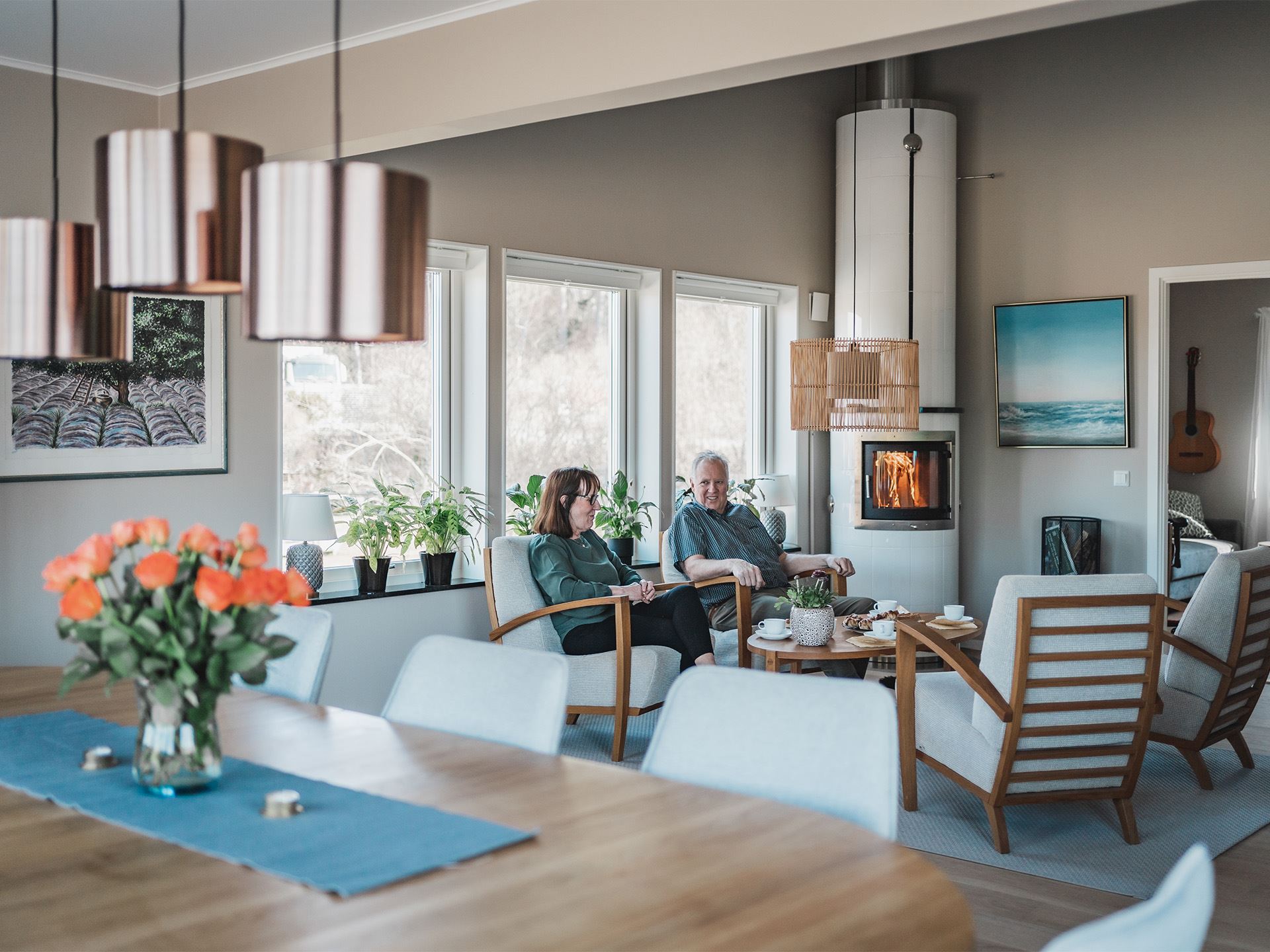För paret var nybygget en skön nystart, även om barn och barnbarnen var ledsna att barndomshemmet såldes. Trots att Kerstin och Kent utgått från sina egna behov och önskemål i utformandet av det nya huset så har familjen självklart funnits med i tankarna kring planeringen. I deras nya Smart 126 finns det extra gästrum och den stora öppna planlösningen var en självklarhet.