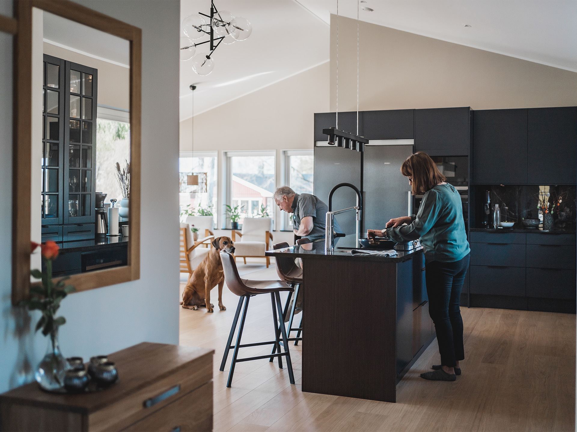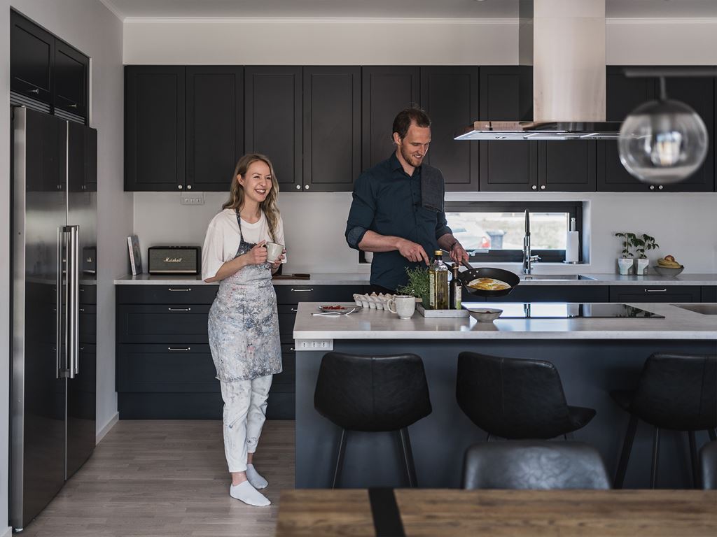 I sitt nya hus har de kunnat välja allt själva och de ser båda en fördel i att ha kunnat plocka sina favoriter ur Myresjöhus sortiment.