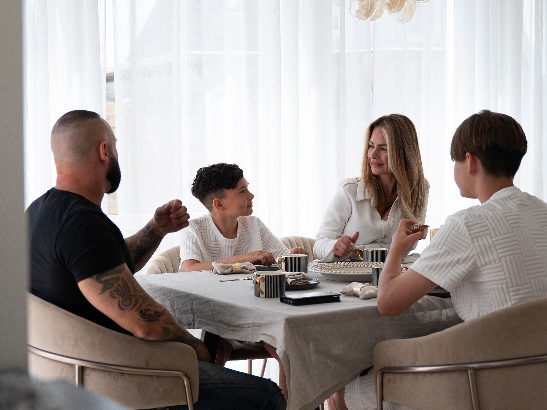 – Jag älskar ljus så vi ville få in mer fönster i de sociala ytorna på entrévåningen. Just dem har vi lagt mycket fokus på, för där tillbringar vi nästan all vår vakna tid. Sedan fick vi hjälp med att ändra planlösningen så att killarna fick varsitt sovrum, och så valde vi att bygga en balkong för att dra nytta av utsikten över älven. Där har vi också sol hela dagen, det är så härligt.