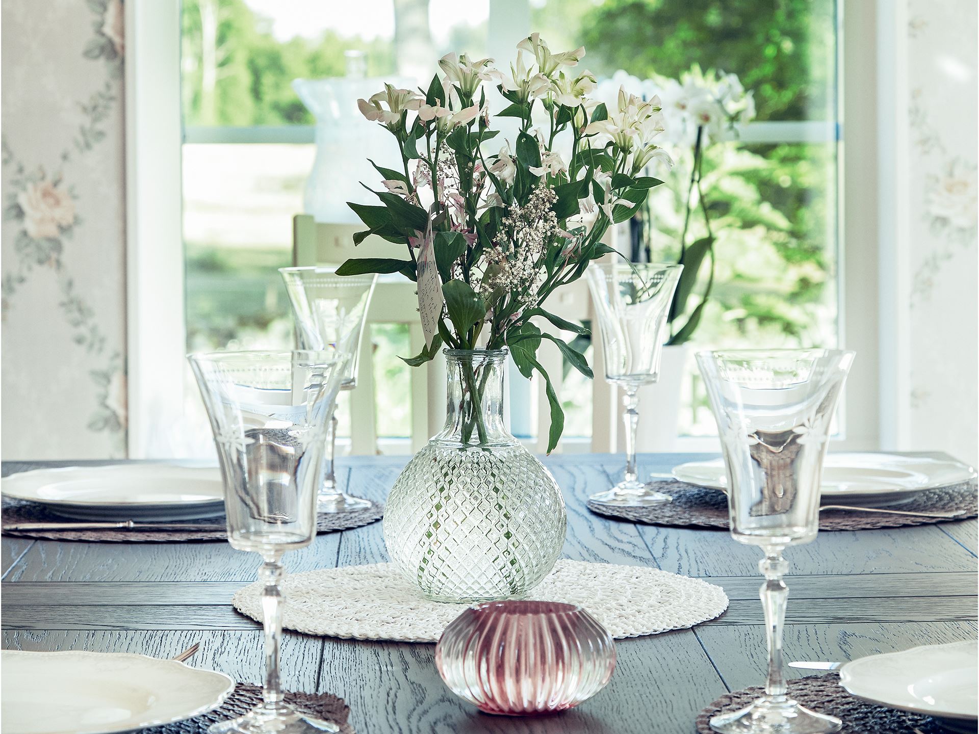 – Vi förstod att hos Myresjöhus kunde vi anpassa ett hus efter våra önskemål. Först var vi inne på att bygga ett hus i New England- stil men vi blev väldigt inspirerade av planlösningen i Ekdunge. Inte minst av att den husmodellen hämtade delar från gamla prästgårdar med detaljer från slutet av 1700-talet. Nu i efterhand känner vi att vi verkligen valde rätt hus för vår gård, allt passar in så bra, både exteriört, interiört och inredningsmässigt, säger Anna.