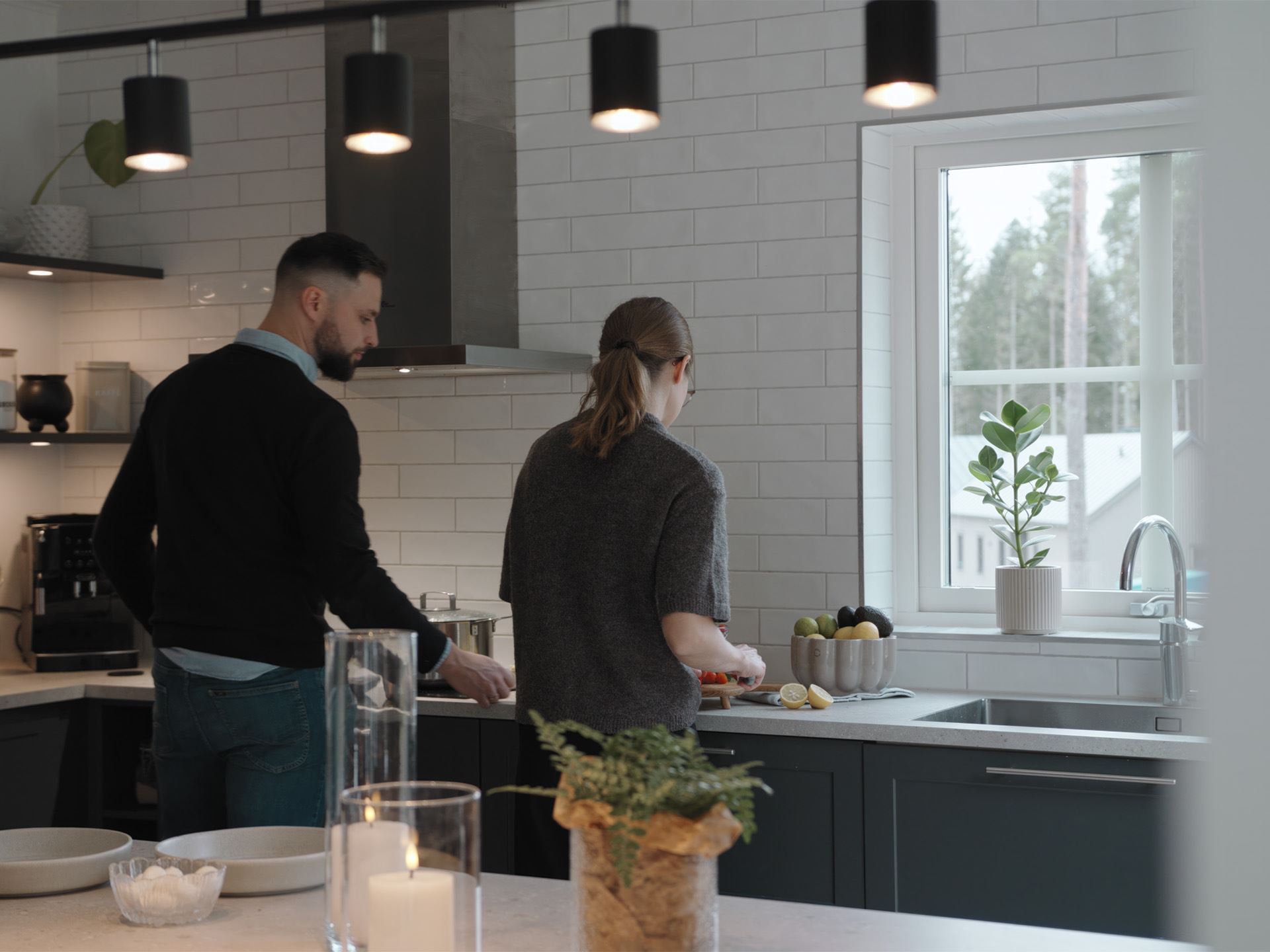 Med bra assistans från säljare Stefan hittade Eliot och Angelica hem i ett Smart 168, ett hus som hade nästan allt – men där paret också gjort en del ändringar i planlösningen. Något som Eliot erkänner att han inte trodde skulle gå i ett hus som byggs industriellt. Huset stoltserar med klassisk stil utomhus, och en mer modern touch inuti – fast ändå hemtrevligt.