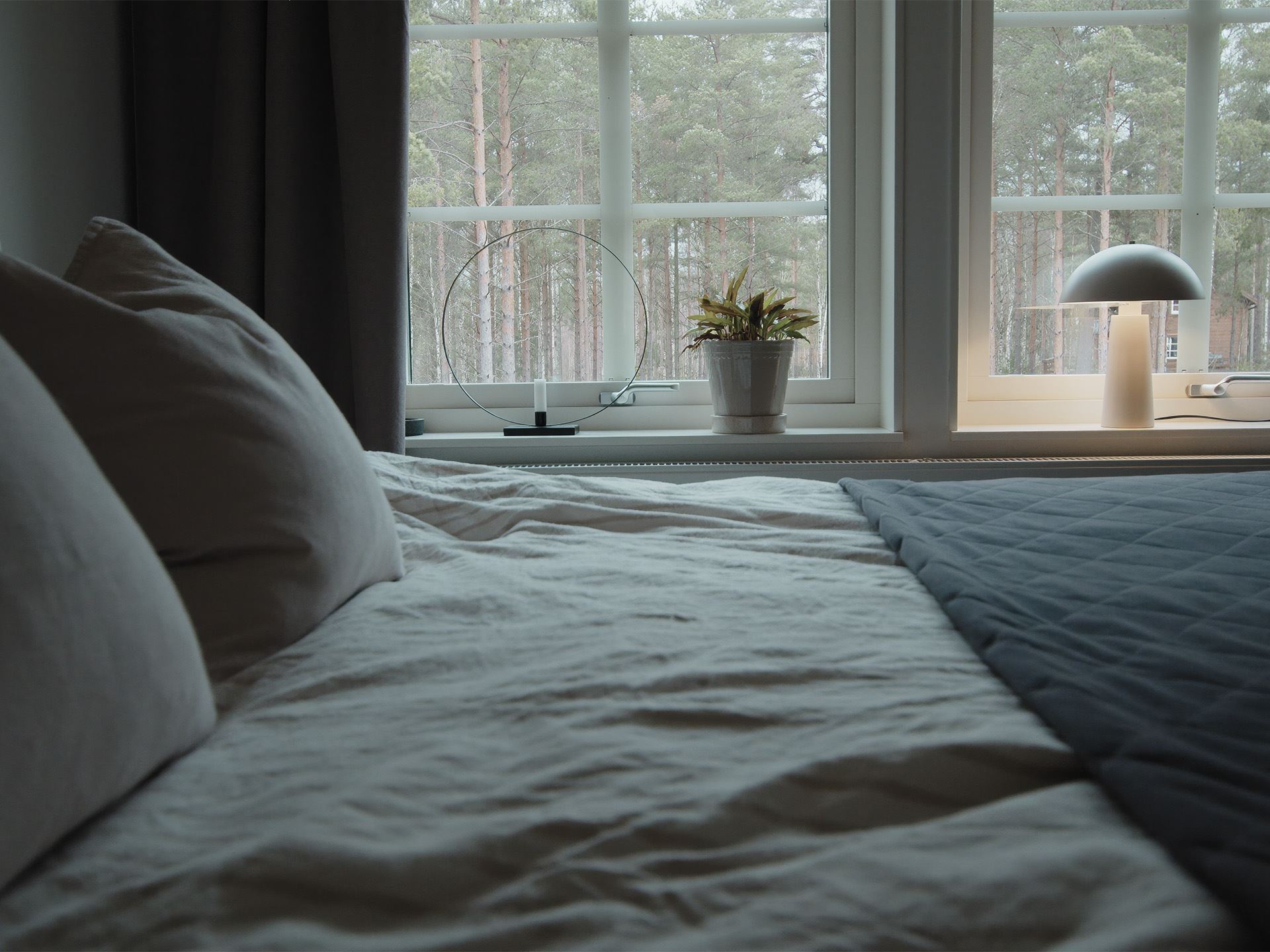 – Ja, inte minst på vintern när man kommer ner på morgonen och tänder en brasa. Jag är också nöjd med att vi valde att ha fönster i alla väderstreck, det gör så mycket för ljusinsläppet. Och genomsikten mot baksidan och skogen utanför ger ett sådant lugn, menar Eliot.
