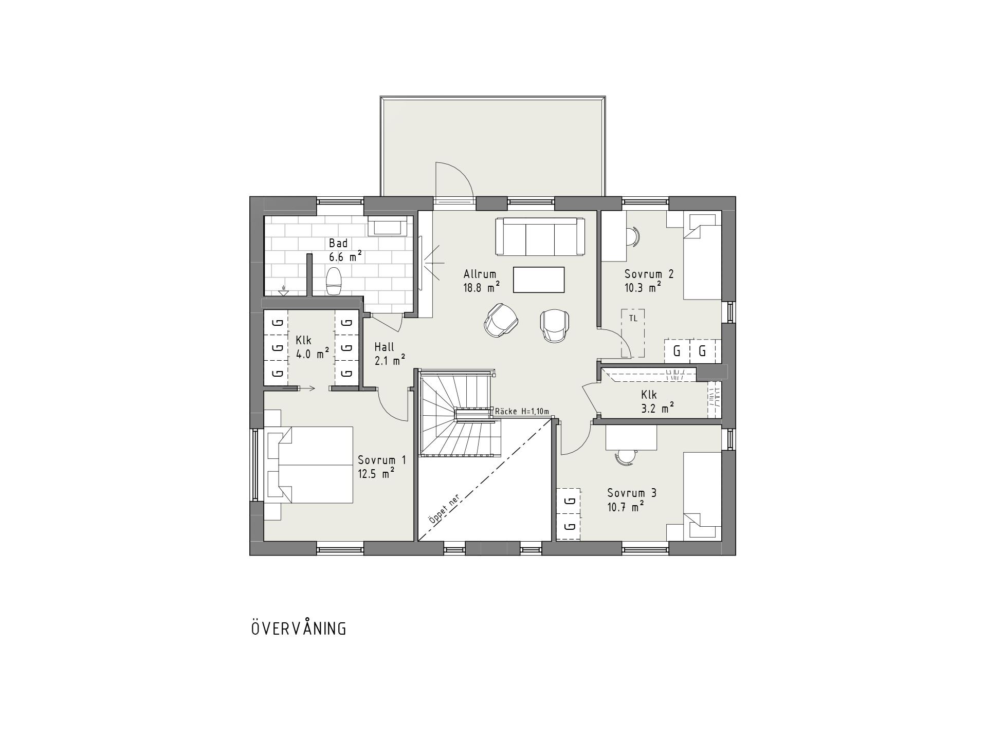 – Från början hade vi ju tänkt oss ett enplanshus med ryggåstak, men det stämde inte med detaljplanens krav. Så vår säljare guidade oss fram till ett tvåplanshus istället: ett Smart 166 som vi fick kika på hos en tidigare Myresjöhuskund som arrangerade en visning, och det fastnade vi för, berättar Fanny.