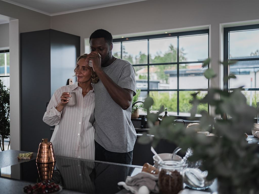 – Vi behövde hitta någon som kunde förverkliga vårt drömhus för just vår tomt. Vi behövde något arkitektritat inom en rimlig budget. Frida, Myresjöhus chefsarkitekt, har gjort ett jättefint jobb och vi är jättenöjda. Hon var väldigt lyhörd efter våra önskemål och hjälpte till att tänka funktion först och estetik sen. Man gör ju oftast tvärt om själv, säger Peter och skrattar.