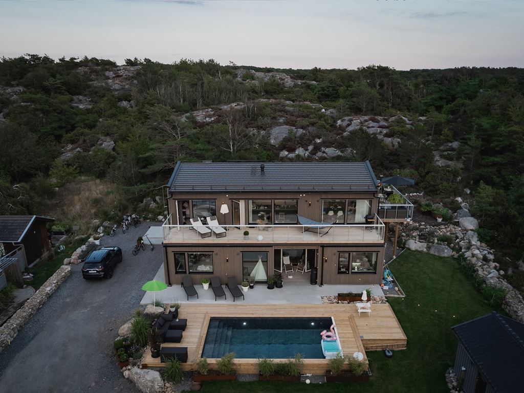 Rätt läge för ditt hus kan vara a och o. Många säger att det är läget som är viktigast, eftersom det är det enda som är svårt att ändra på i efterhand. Hos Peter är det ingen fråga om att han och hans familj hittat det rätta läget. Den makalösa utsikten är återkommande så fort Peter pratar om sitt nya hem och han berättar hur gärna de ville ta vara på den när de byggde huset. Väl på plats förstår man varför. För vad som började med en enkel båtplats utanför Kungsbacka slutade överraskande nog med en tomt. Här reser sig villaområdet som en våg bredvid havet och upp mot berget och på något sätt känns det som att husen och naturen växt samman. Dessutom har ingenting någonsin känts mer västkust än havsutsikten och klipporna nedanför.