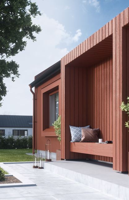 När du flyttar in i ditt nya Myresjöhus är fasaden redan grundoljad och grundmålad. Det betyder att du vanligtvis kan måla direkt med fasadfärgen du valt. Undantaget är om det går lång tid innan du hinner sätta igång. Då kan du först behöva tvätta fasaden, grundolja skarvar och ändträ och eventuellt ge fasaden ytterligare ett lager grundfärg innan du går på med fasadfärgen.