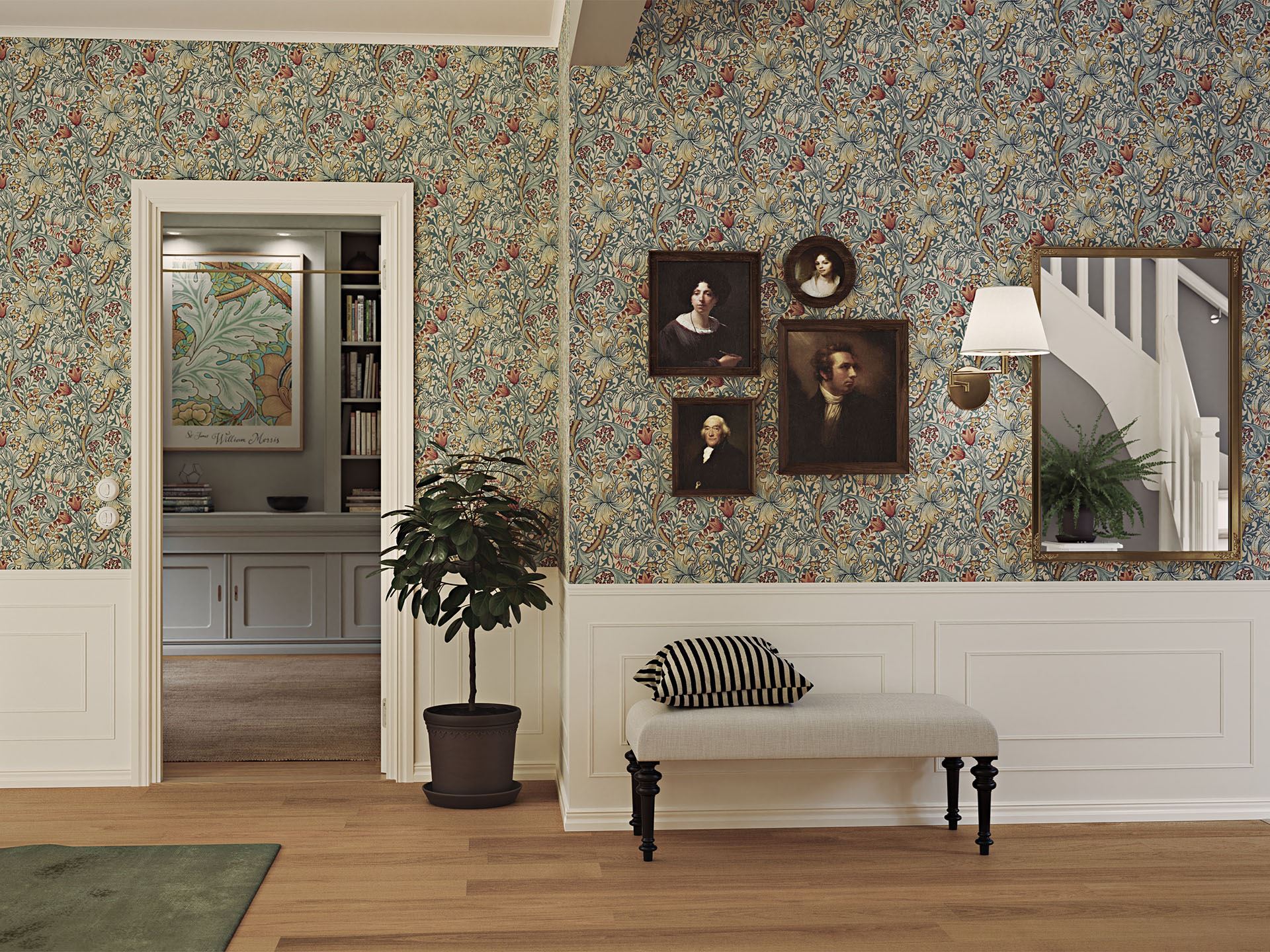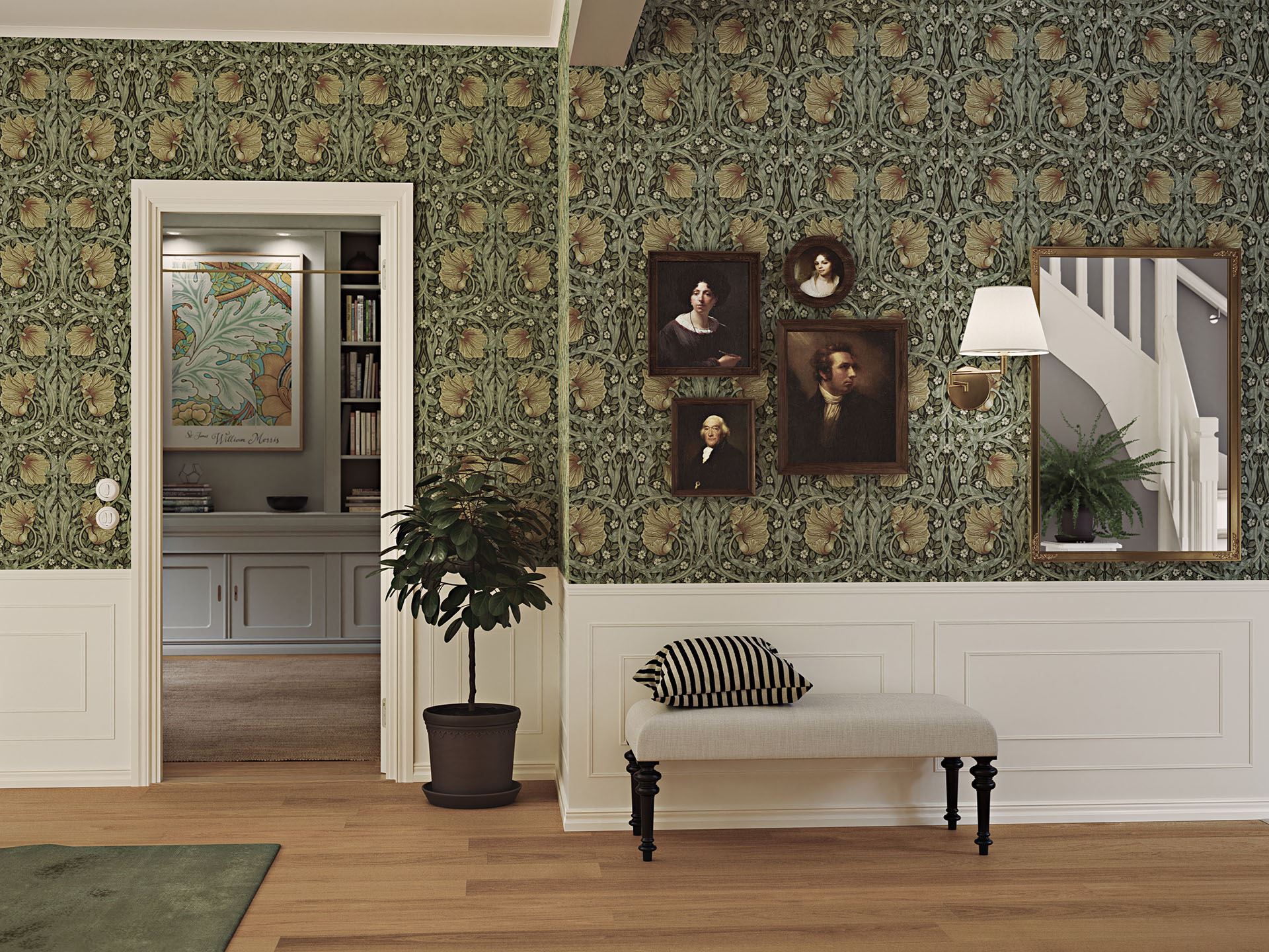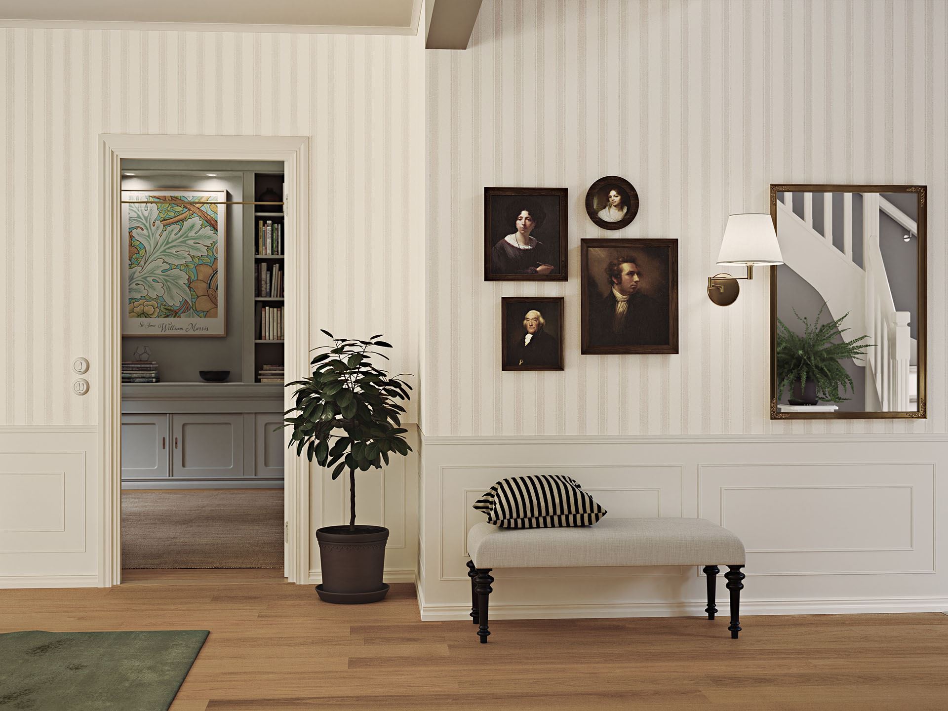 Från början handlade tapeter inte om det estetiska utan snarare om att isolera kalla och dragiga väggar. Skönheten fick man liksom på köpet. Idag behöver vi inte bry oss om den praktiska detaljen – utan kan helt fokusera på hur rätt tapet kan förändra ett rum. Det härliga med den moderna sekelskiftesstilen är att den blir vad du gör den till. Även om de element vi oftast förknippar med sekelskiftesstilen idag kommer från jugendstilen finns det fler stilinriktningar att inspireras av. Plocka väl valda godbitar, eller gå all in – valet är ditt.