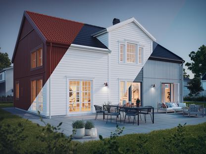 Vilka kulörkombinationer du väljer gör mycket för helhetsintrycket av ditt hus. Fasad, tak, fönster och dörrar – och glöm heller inte sådant som stuprör och hängrännor. Det samma gäller vilka material du väljer. Plåttak eller pannor? Puts eller träpanel – och om panel: vilken typ?