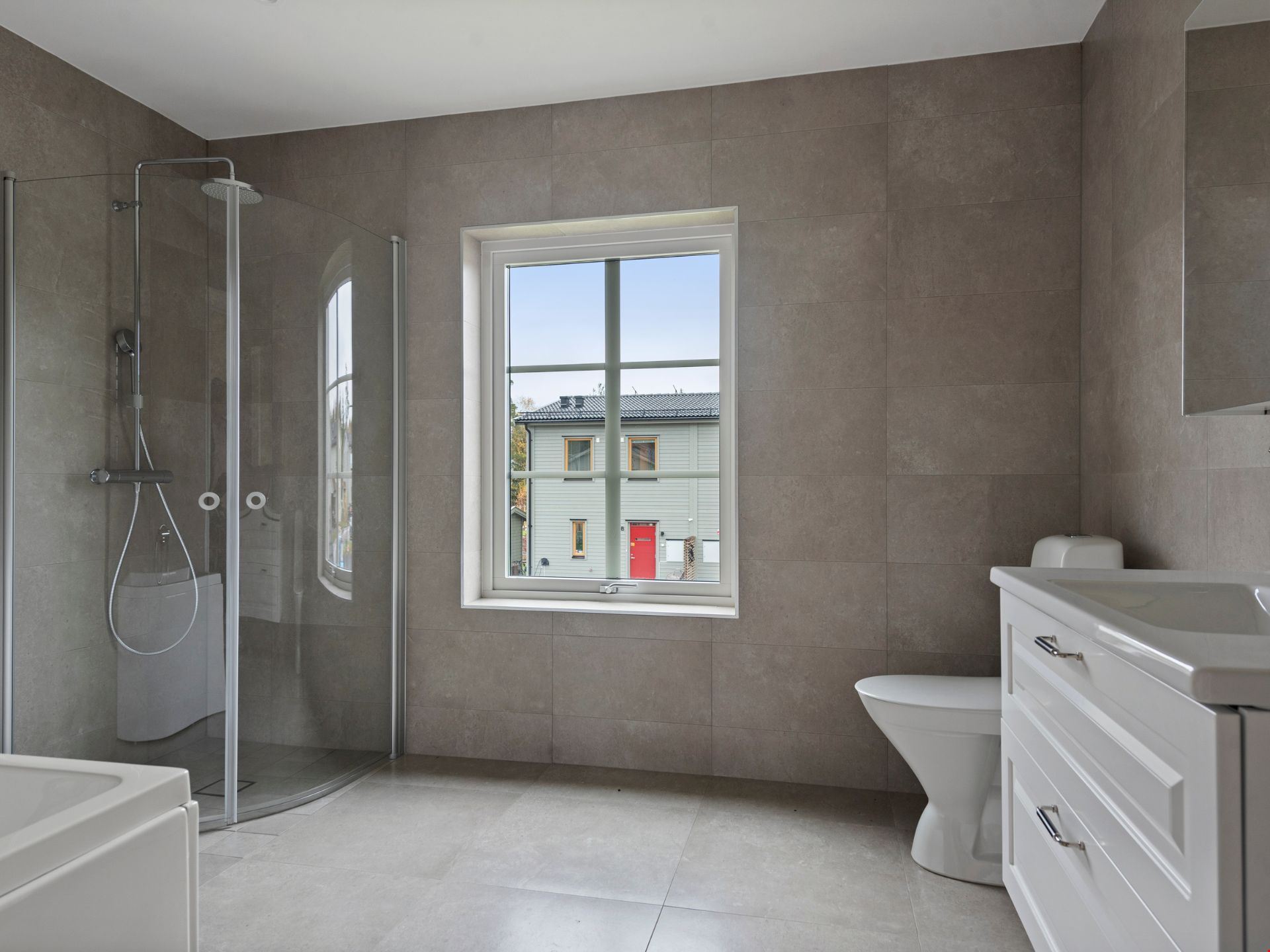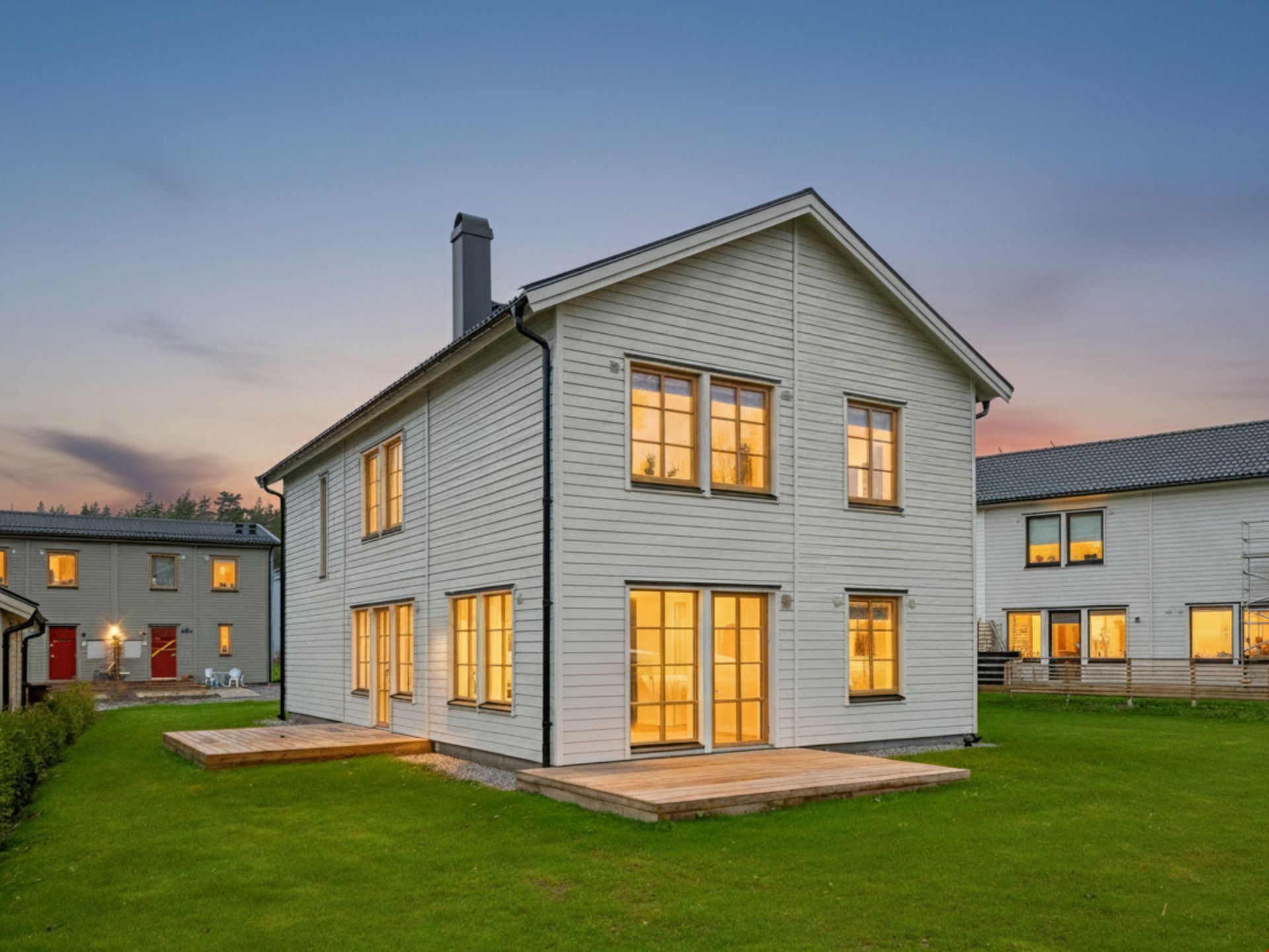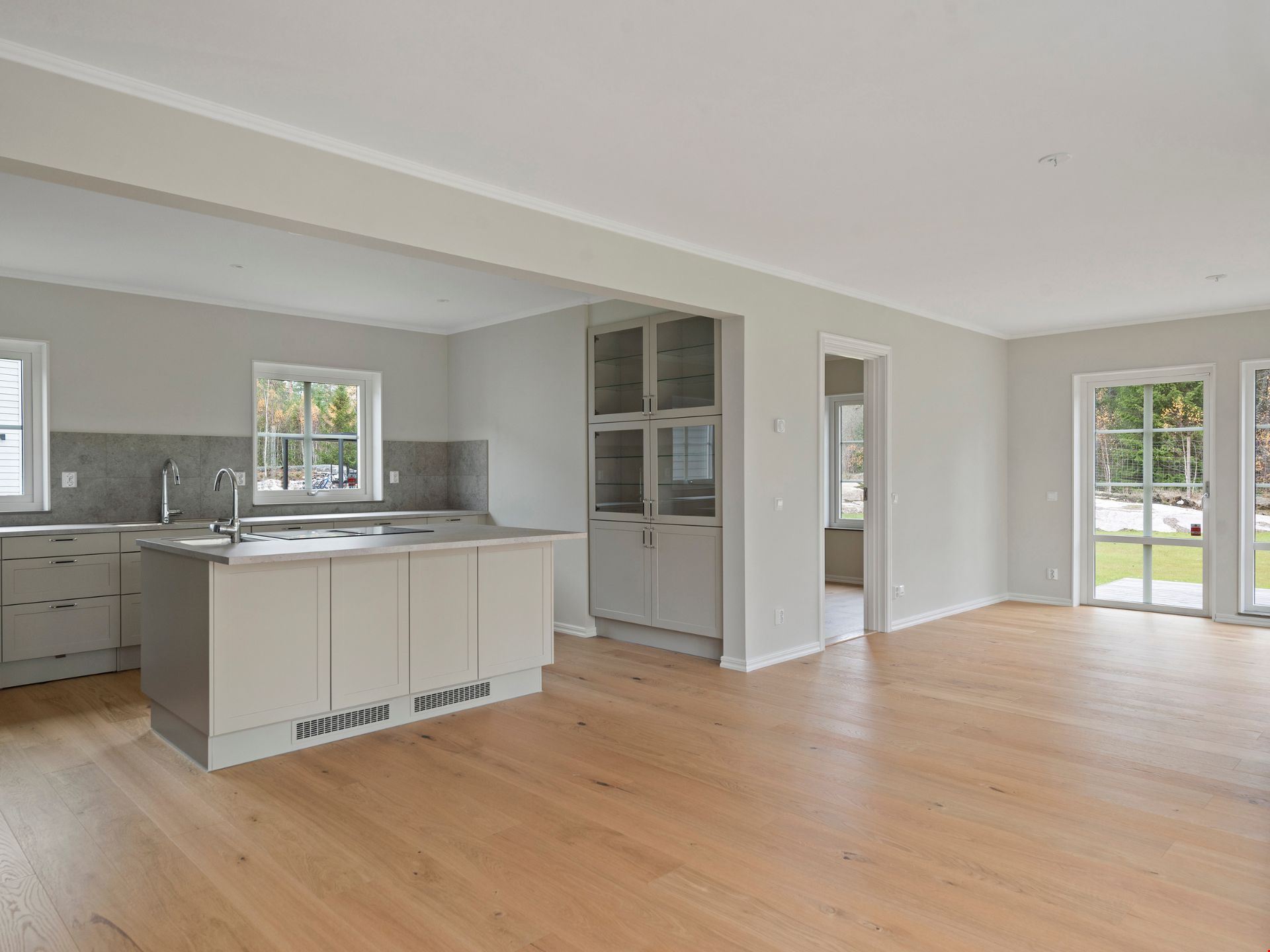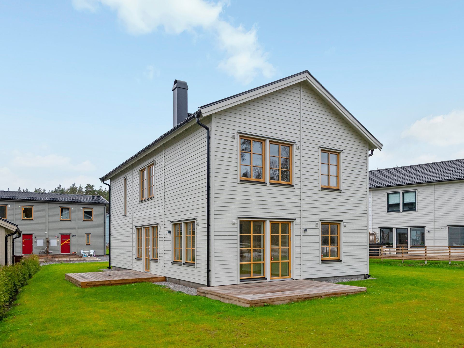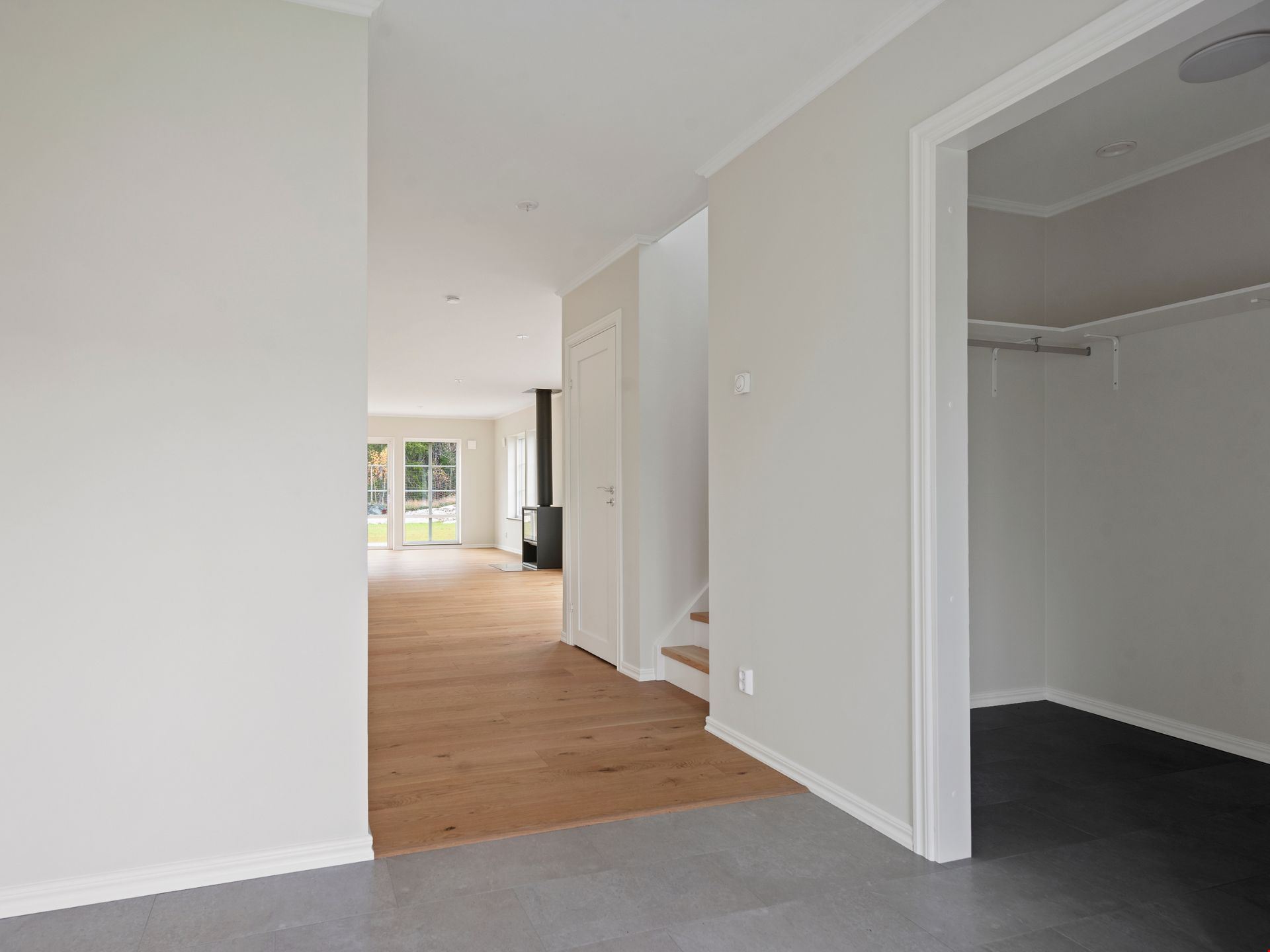 Välkommen in i denna nyproducerade villa om 181 kvm med 6 rum och kök. I det här huset kliver du in från gaveln och har en liten toalett direkt till vänster och utmärkt jackförvaring direkt till höger. Några steg ytterligare så hittar du den praktiska tvättstugan med egen groventré. I mitten finner du husets hjärta: kök, vardagsrum och matplats som ligger i direkt anslutning till varandra och ger rejäla ytor för umgänge. Till vänster om vardagsrumsdelen finner du slutligen ett av husens fyra sovrum.
