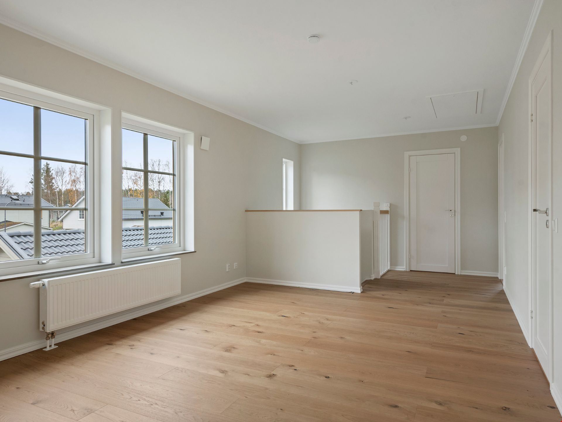 På husets övervåning finner du gott om plats för familjens privata liv i tre trivsamma sovrum, samtliga med egen klädkammare. Här finns även ett mysigt allrum, ett badrum och master bedroom får sin egna lilla toalett med dusch.