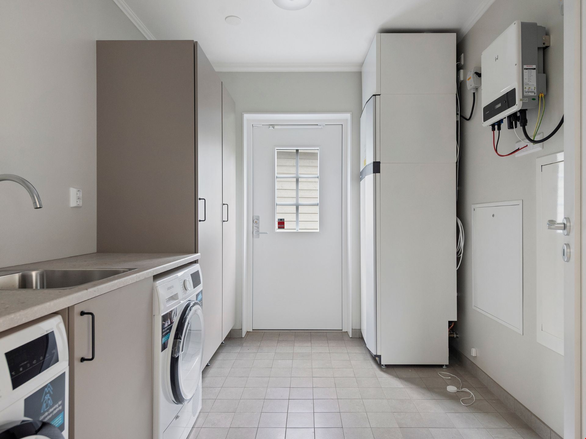 Huset är utrustat med 10 solpaneler från Nibe så att du ska kunna producera din egen el. Det innebär att man blir betydligt mindre sårbar för stigande elpriser. På sommarhalvåret kan solcellerna i många fall täcka hela behovet av hushållsel. Eventuellt överskott kan man dessutom smidigt sälja tillbaka till elbolaget.